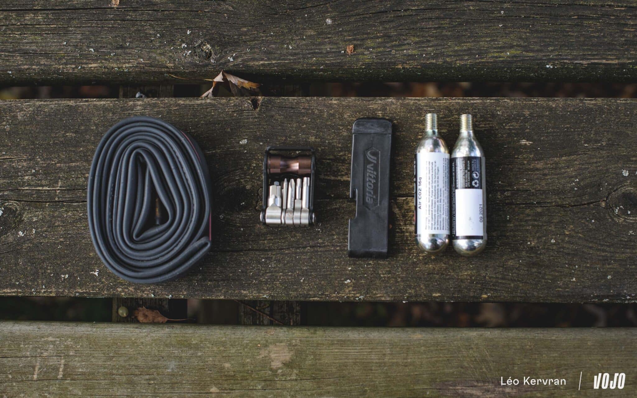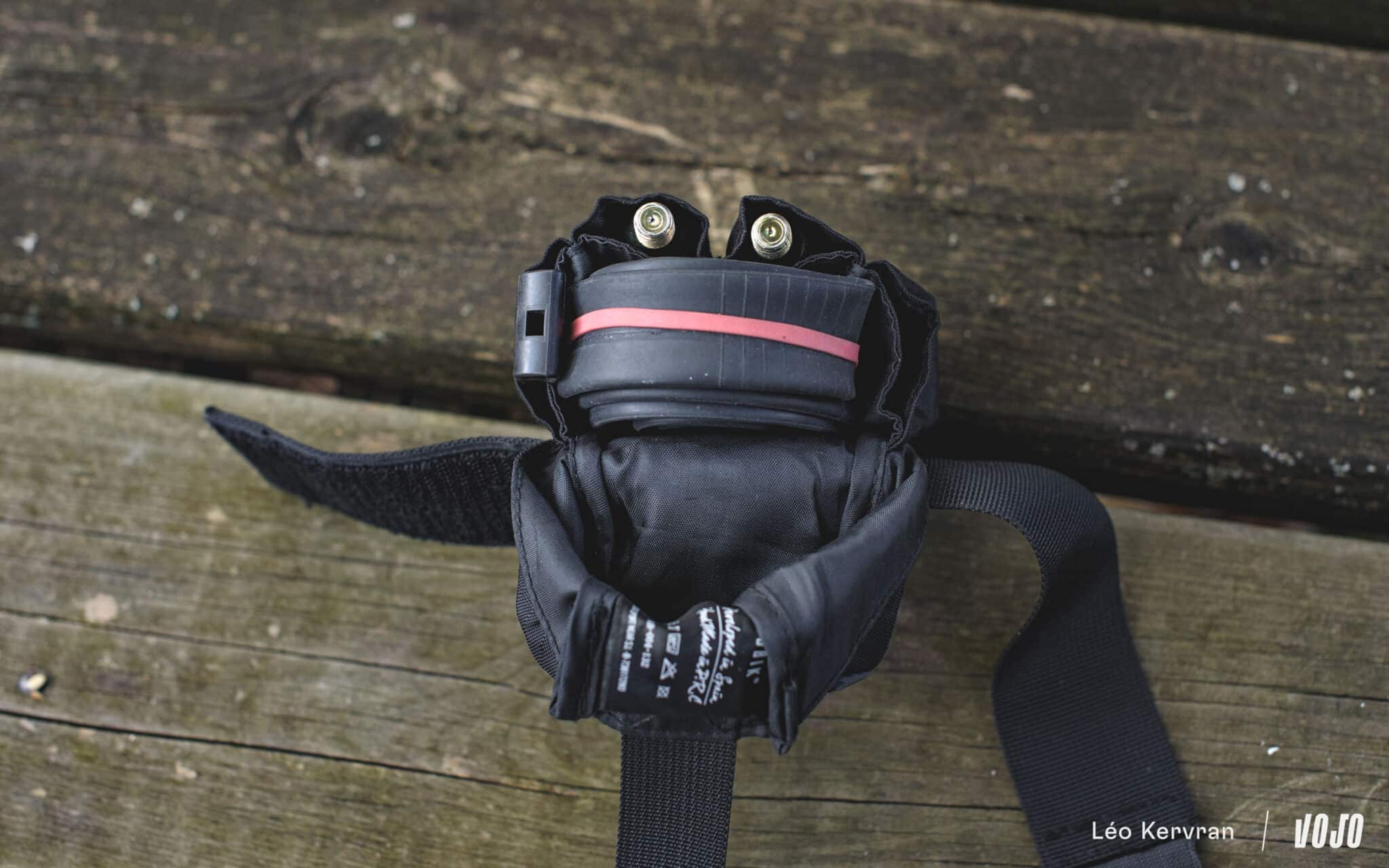 Comme vous pouvez le voir sur les images de cet article, on y fait rentrer sans problème un gros multi-outils (Crankbrothers M19), un démonte-pneu et deux cartouches de CO2, qui peuvent être facilement remplacées par autre chose (nourriture, argent…) si on a une pompe ailleurs. C’est en effet la seule limite de la Pouch Grande : dans ce format, difficile d’emporter une mini-pompe. Une Birzman Mini-Apogee, la plus petite qu’on connaisse (13,5 cm) passerait peut-être mais on a vu plus performant pour gonfler un pneu de gravel ou de VTT.