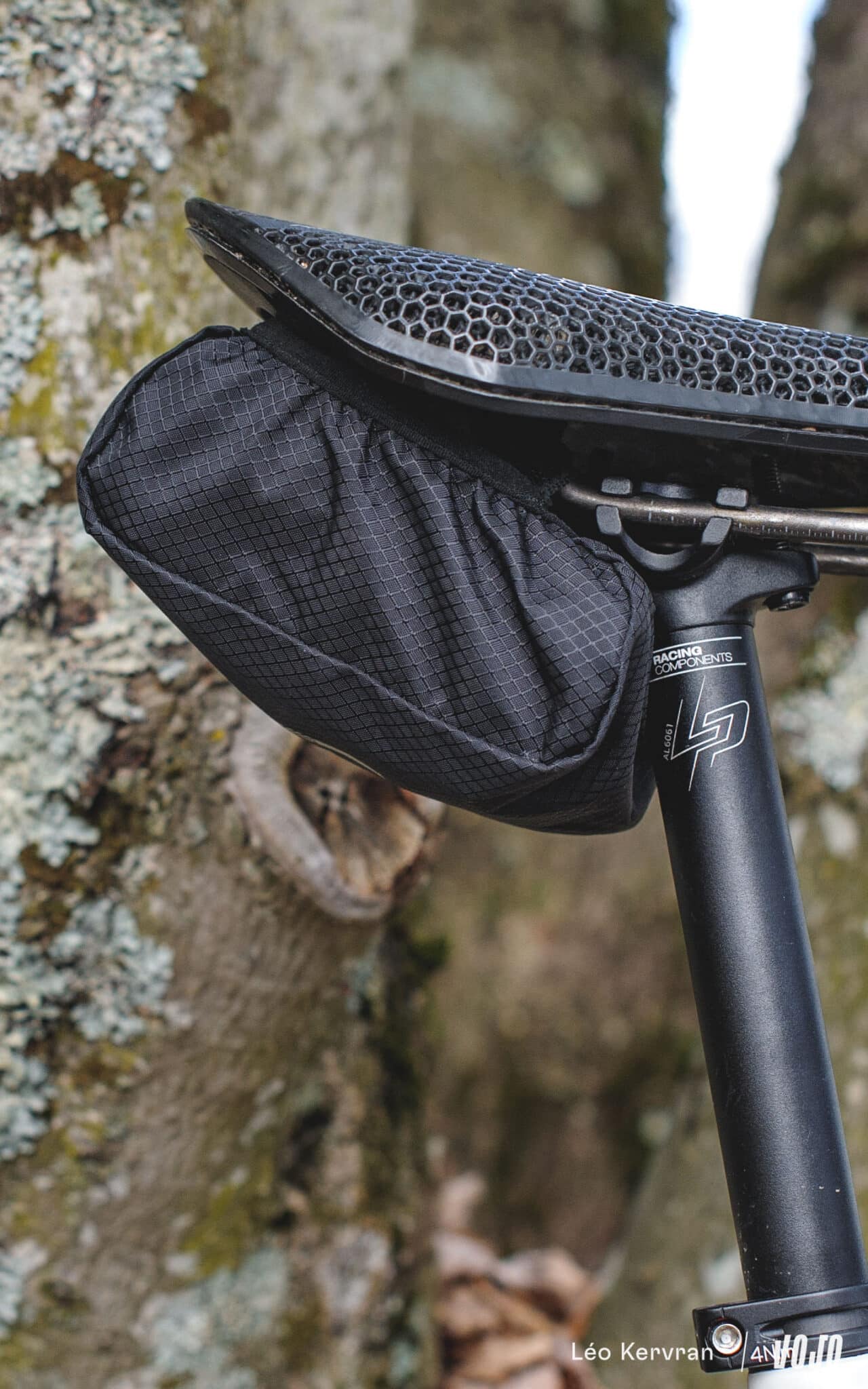 Résultat, la Gobik Pouch Grande ne bouge absolument pas sur le vélo. Elle reste parfaitement stable et silencieuse en toutes circonstances, sans avoir recours à une deuxième point d’appui sur la tige de selle. Cela permet de l’utiliser avec des tiges de selle télescopique sans crainte d’abîmer le revêtement ou contrainte quelle qu’elle soit.