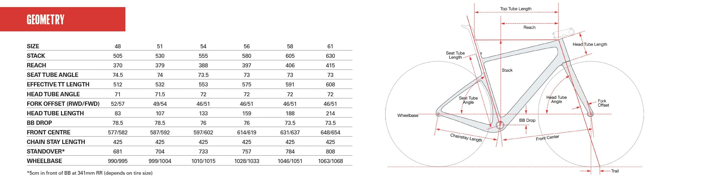 Pas de révolution sur cet Áspero, on vous l’a dit, mais de petites évolutions. Le triangle arrière s’allonge un peu puisque les bases passent de 420 à 425mm, avec une incidence légèrement à la hausse pour l’empattement. Le reach (397 mm en taille 56) et le stack (580 mm en taille 56) n’ont quant à eux pas été modifiés.