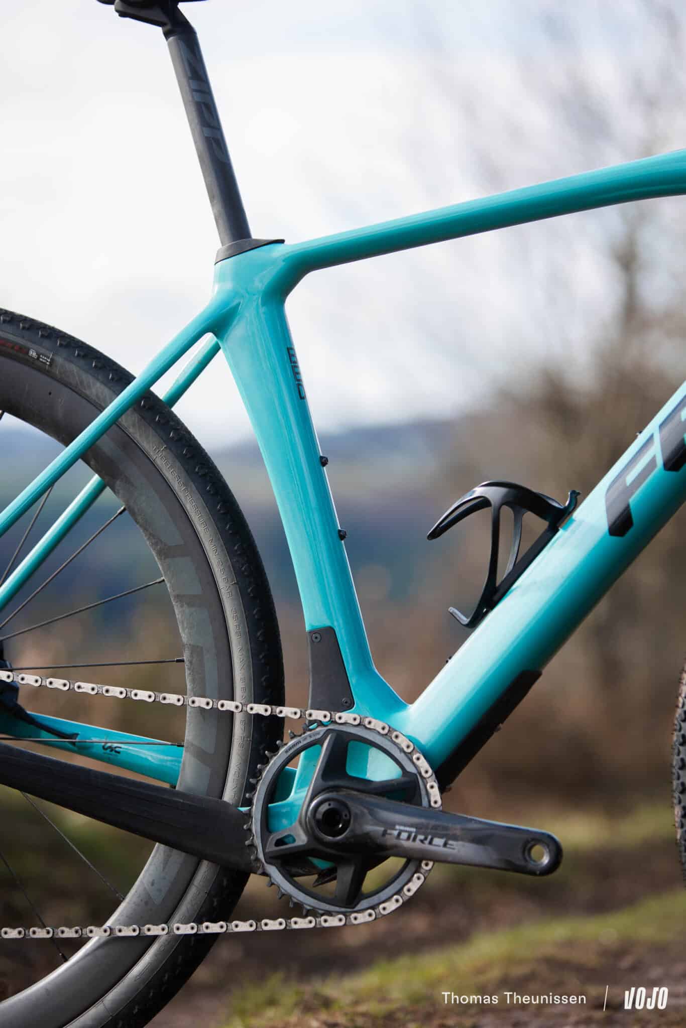 Côté pneus, on trouve d’origine des Vittoria Terreno Dry en 38 mm. Un choix très radical ! Alors, oui, sur route et larges chemins finement empierrés, c’est redoutable niveau rendement et les crampons latéraux très bien pensés offrent un comportement rassurant quand on prend de l’angle, mais adieu la polyvalence quand c’est humide ou plus meuble. Clairement, nous aurions préféré des Vittoria Mezcal en 40 ou 42 mm, toujours assez roulants mais plus polyvalents et apportant un peu plus de confort. Mais bon, c’est quelque chose d’assez facile à changer, ce que nous ne nous sommes pas privés de faire lors de notre essai.