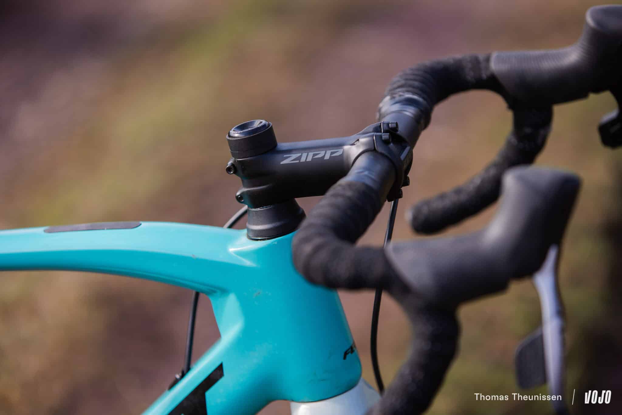 Zipp est aussi présent au niveau du poste de pilotage (en aluminium) et de la tige de selle 27,2mm (en carbone avec tête en alu). Simple, beau et efficace. Idem pour la selle Prologo, très agréable et offrant un confort ferme que nous avons beaucoup apprécié.