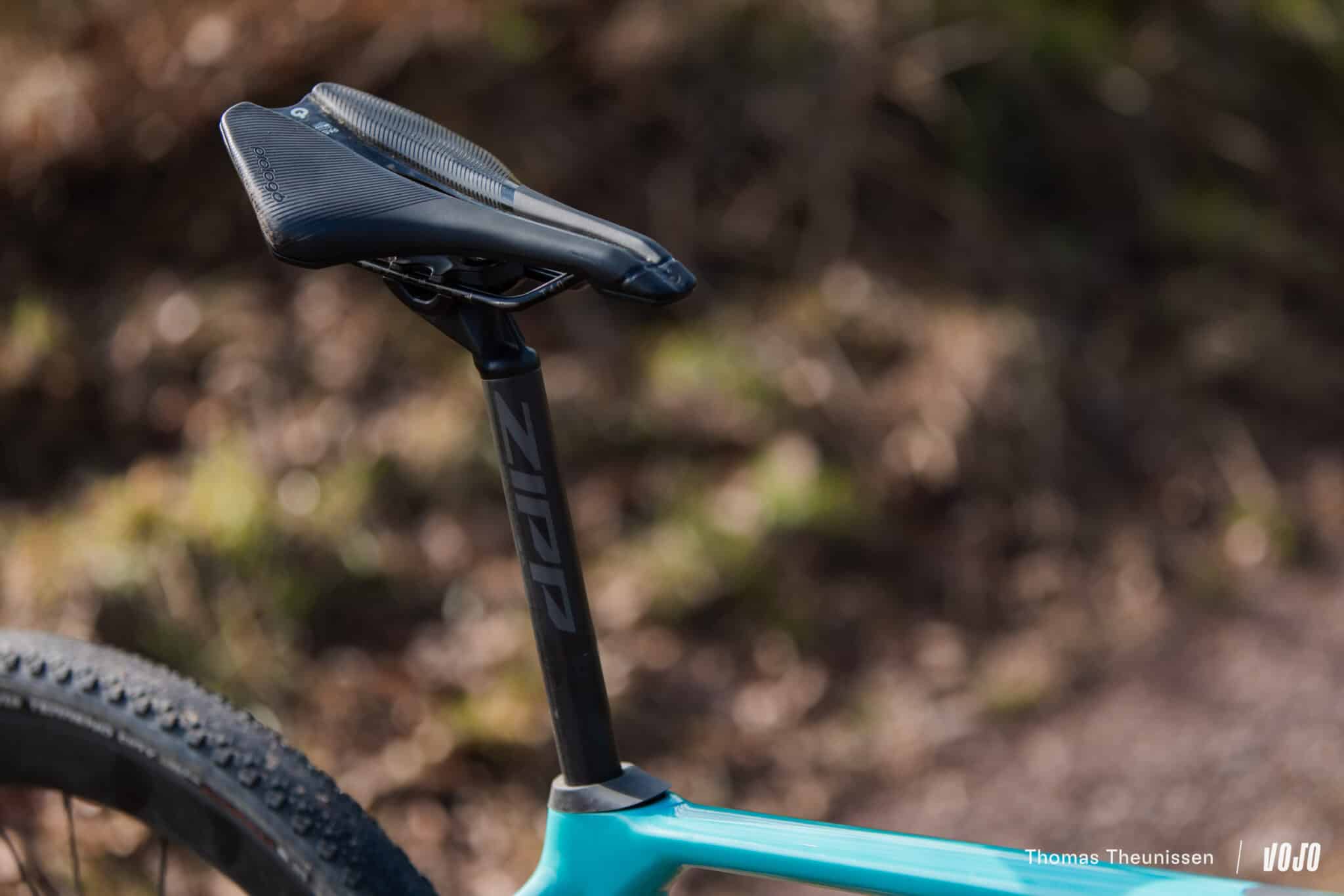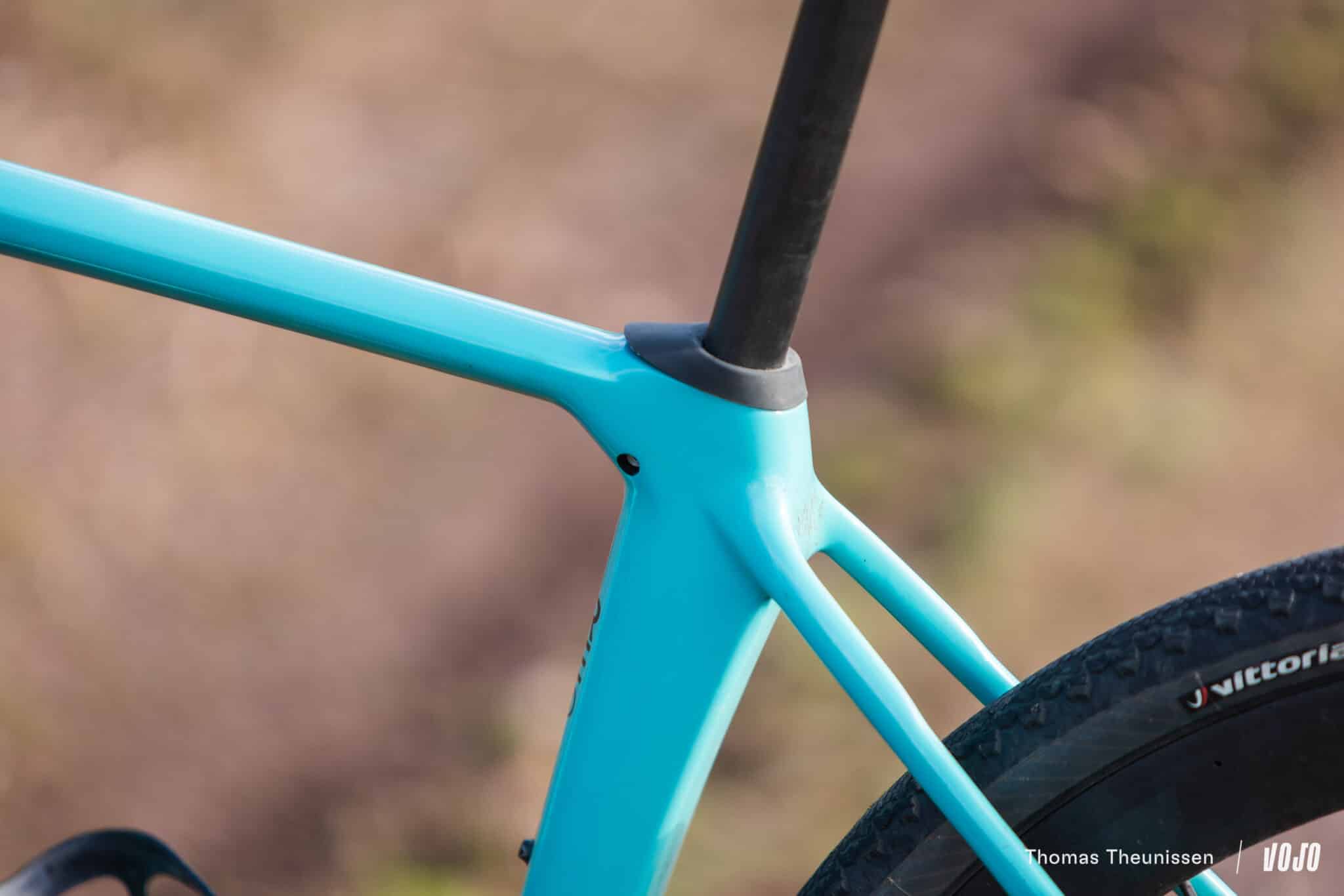 Concrètement, le cadre est prévu à la base pour accueillir une tige de selle en 30,9mm de diamètre. Pratique si vous voulez une tige de selle bien rigide pour un montage light… ou surtout si vous souhaitez monter une tige de selle télescopique sur votre gravel et que vous voulez un choix large de modèles VTT, sans être cantonnés aux rares modèles disponibles en 27,2mm de diamètre. Mais il y a aussi une option confort : dans ce cas, vous venez placer un insert en elastomètre qui va ramener le diamètre de la tige de selle à 27,2mm. On gagne alors sur les deux tableaux, avec non seulement un insert qui a des capacités d’amortissement et aussi une tige de selle de plus petit diamètre, qui peut également se déformer plus facilement. Malin.