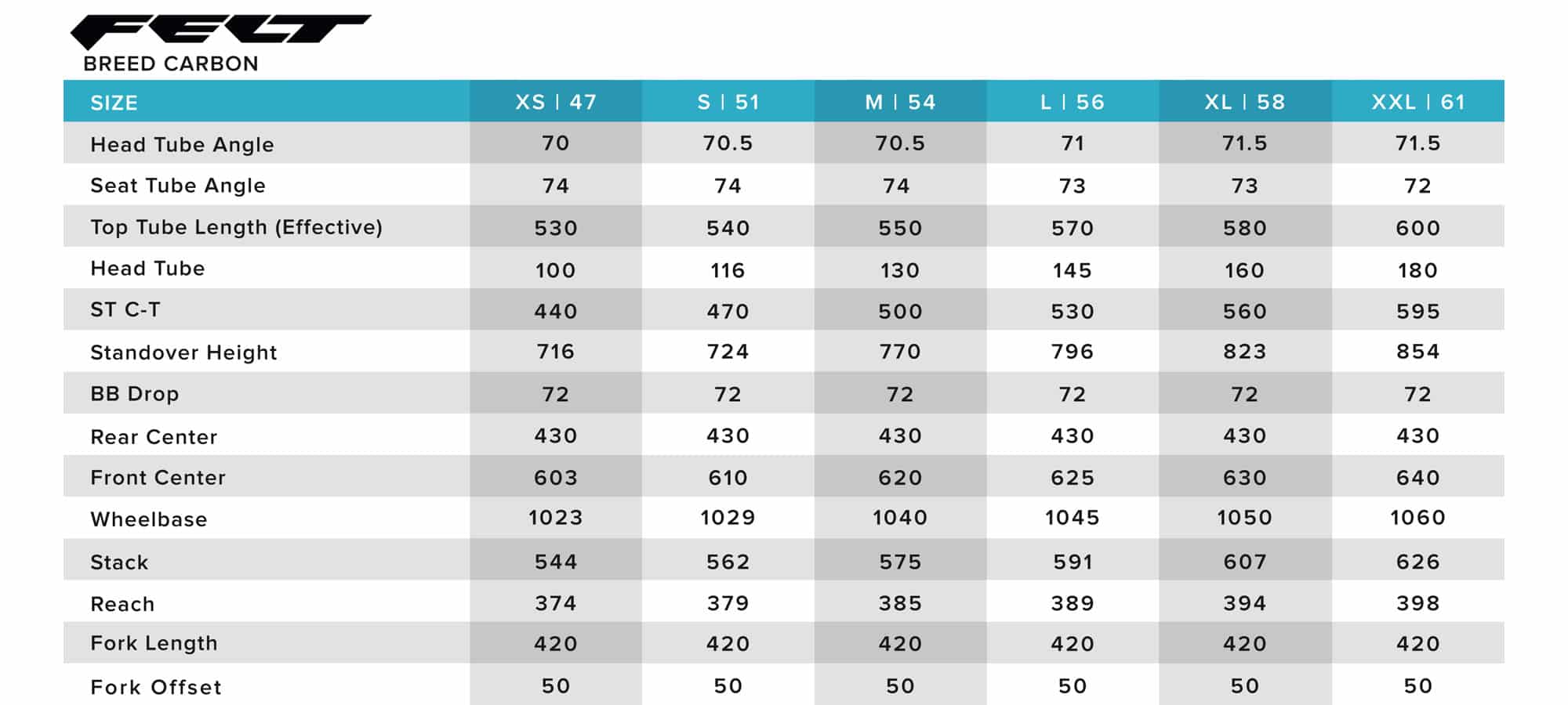 Felt Breed Advanced – géométrie