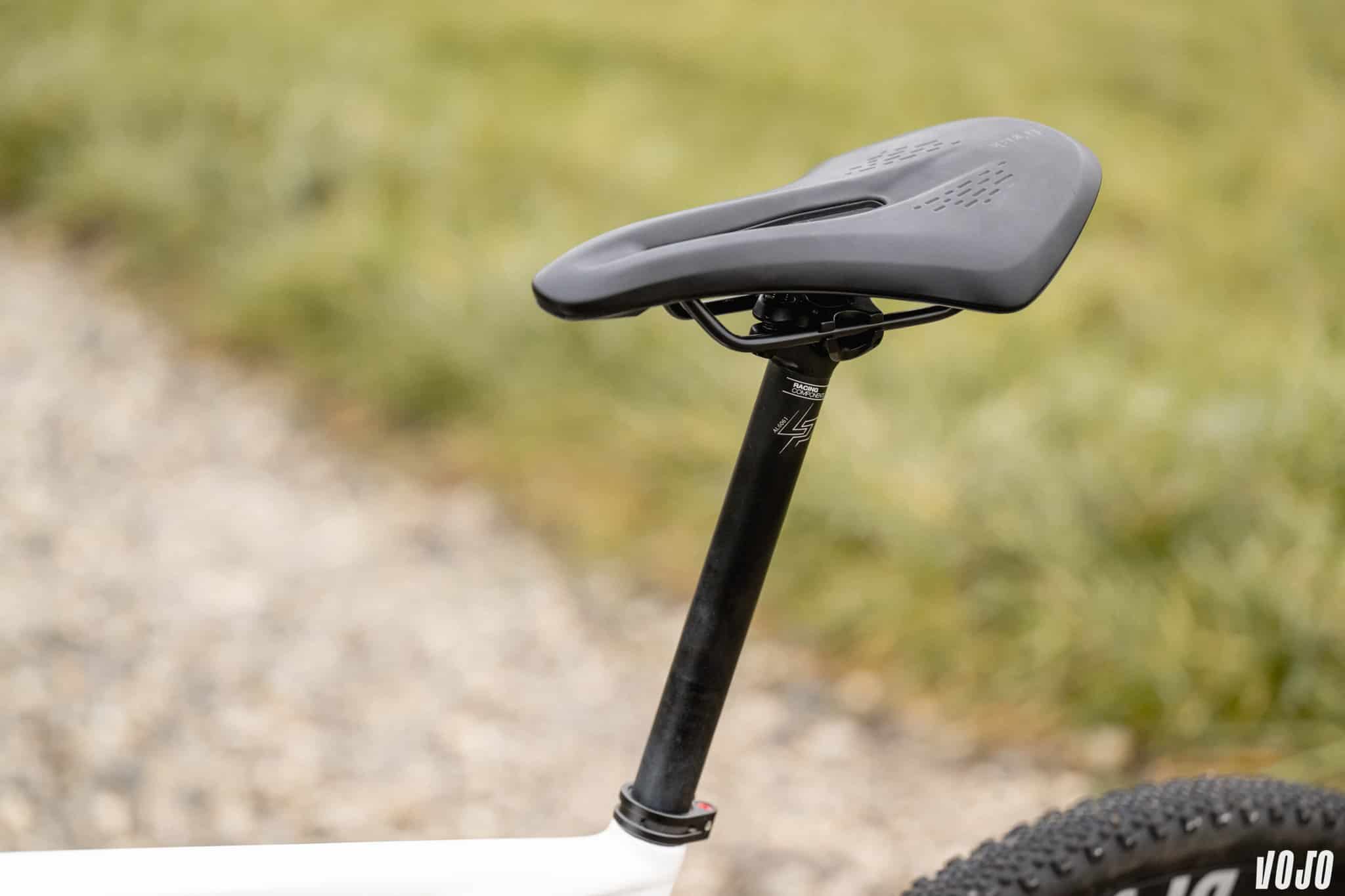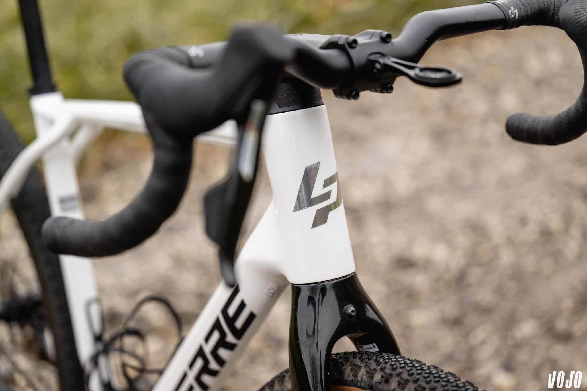 La potence en aluminium, qui intègre un support de compteur, est signée Lapierre tout comme le cintre, qui est lui en carbone et avec un rise de 20 mm (42 cm en XS, S et M ou 44 cm en L et XL, flare de 12°) et la guidoline, très agréable. La tige de selle, en aluminium à nouveau affiche également un logo Lapierre tandis que la selle est une Fizik Terra Argo X7 en 150 mm de large. On aurait préféré la 140 mm mais le choix de selle est une question très personnelle qui dépend de la morphologie de chacun et chacune.