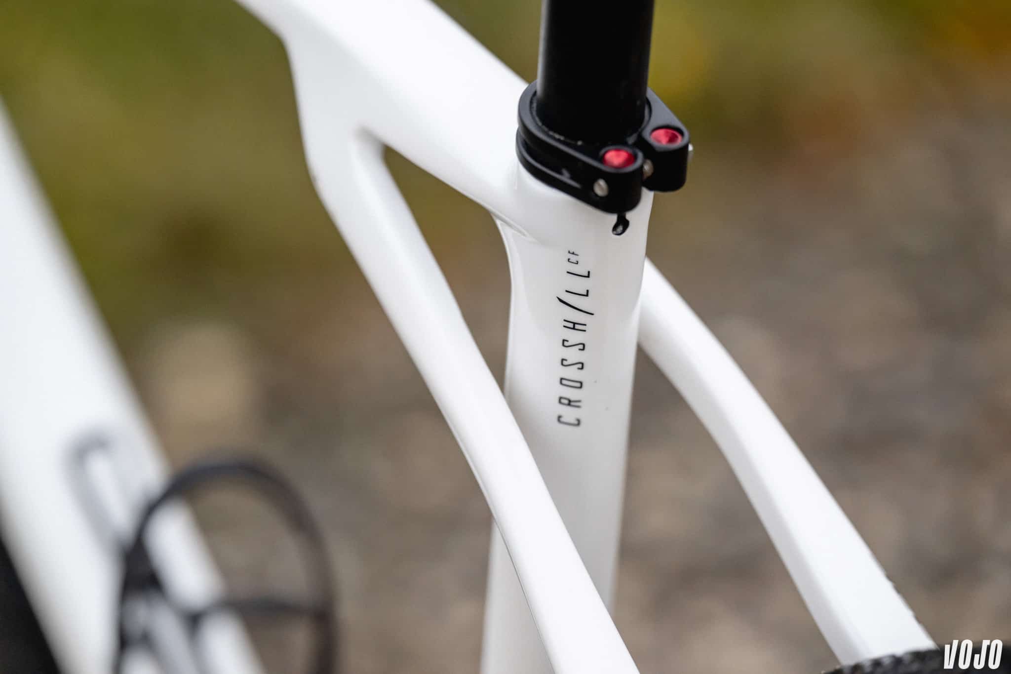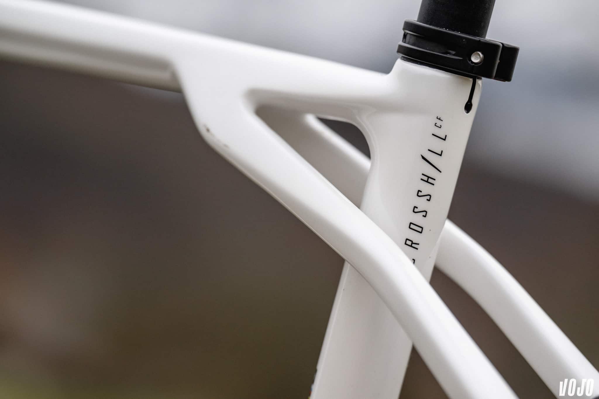Malgré ces approches différentes entre l’avant et l’arrière du vélo, l’ensemble fonctionne bien et le Crosshill CF propose finalement des lignes assez harmonieuses, on pourrait même parler de joli vélo (avec les deux pneus de la même couleur de préférence, mais c’est une autre histoire). Seule la vue de face du vélo semble un peu en deçà du reste, moins travaillée. Certains ou certaines auraient peut-être préféré une fourche blanche mais avec le rappel de couleur sur le tube diagonal, cela ne nous choque pas.