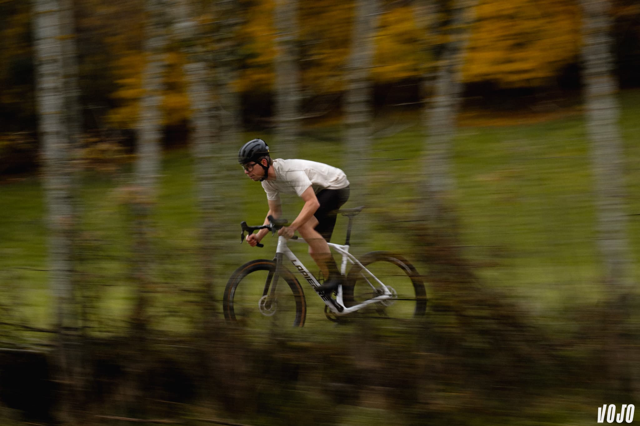 Après deux heures sur des terrains très variés, il n’y pas la moindre sensation de fatigue ou d’usure comme on peut l’avoir sur des machines plus raides, pas de lassitude qui s’installe. On ne se sent pas non plus obligé de mettre un minimum de vitesse pour se sentir bien, et on est pourtant sur un montage haut de gamme équipé de roues mi-hautes en carbone. Voilà un vélo fait pour rouler longtemps.