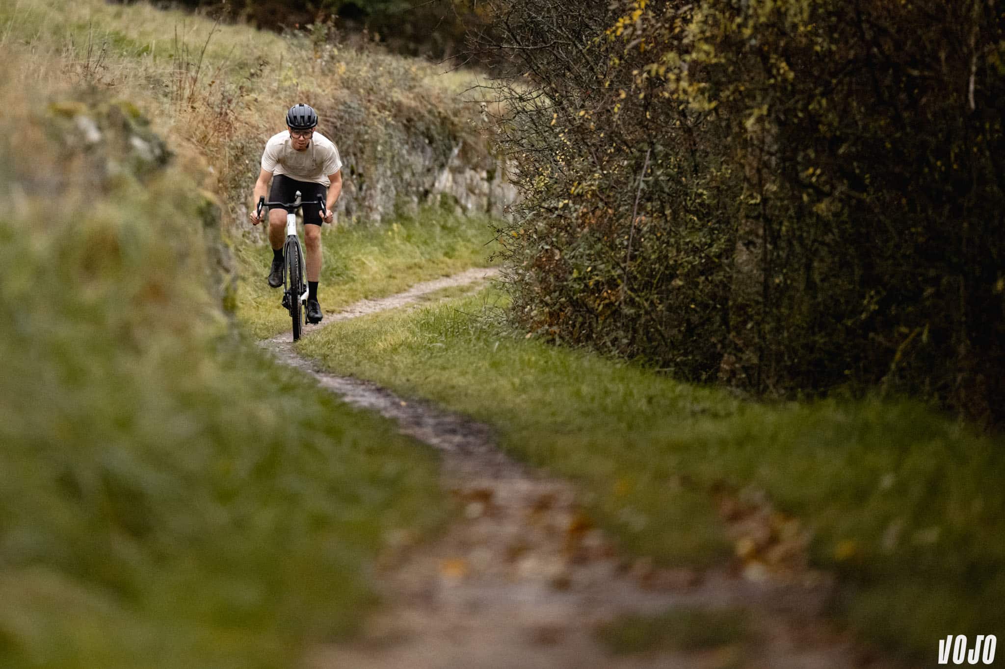 Dans les descentes un peu techniques, on touche toutefois aux limites de cette géométrie et il faut du doigté (ou de l’inconscience ?) pour réussir à passer vite mais encore une fois, les capacités de filtration du vélo permettent au moins de garder l’image stable et de ne pas se faire secouer inutilement. Pour le reste, il ne faut pas oublier qu’on est sur un gravel tout rigide et pas sur un VTT. Si on se fait peur en descente, c’est peut-être qu’il est temps de revoir l’itinéraire… ou de changer de monture.