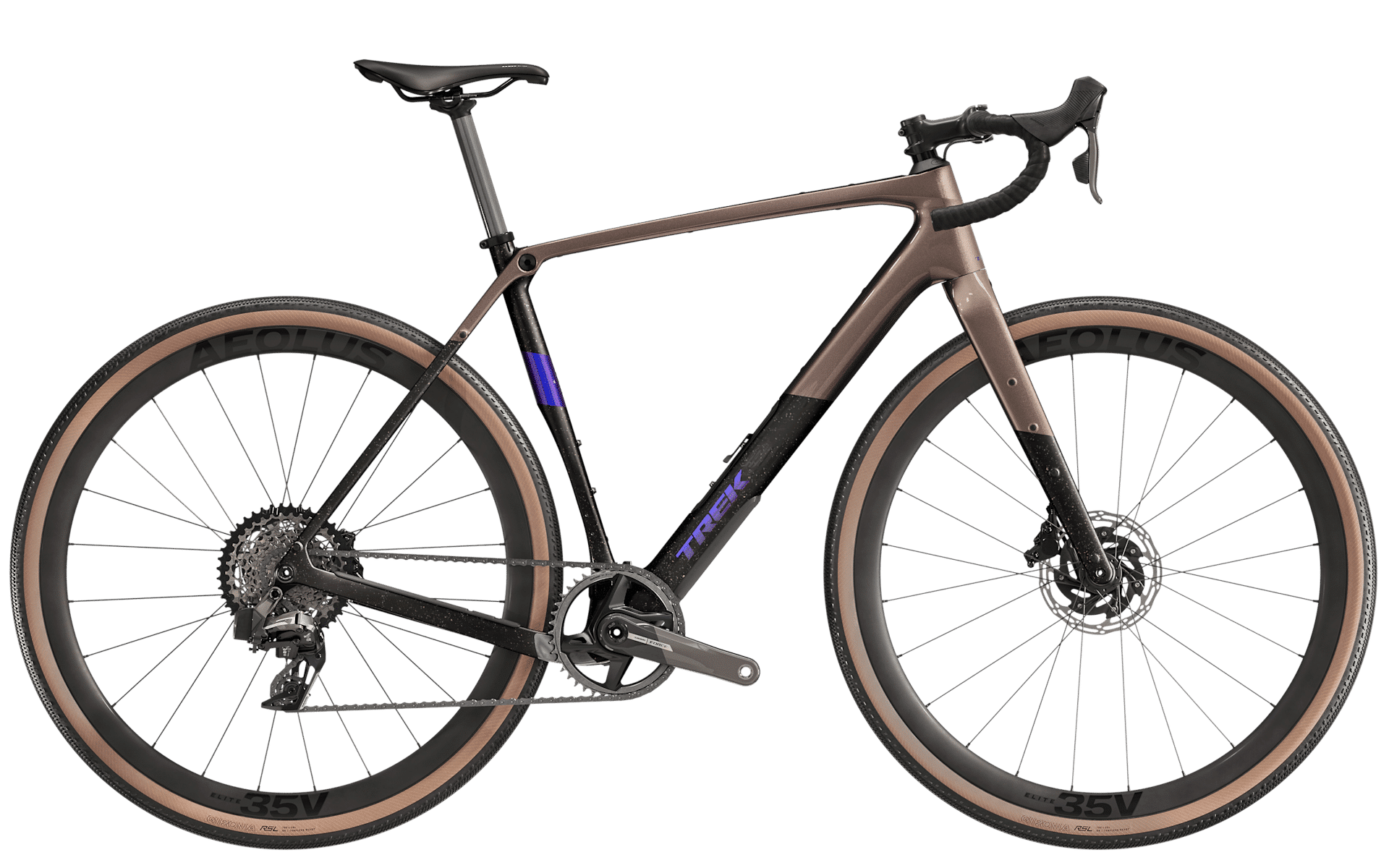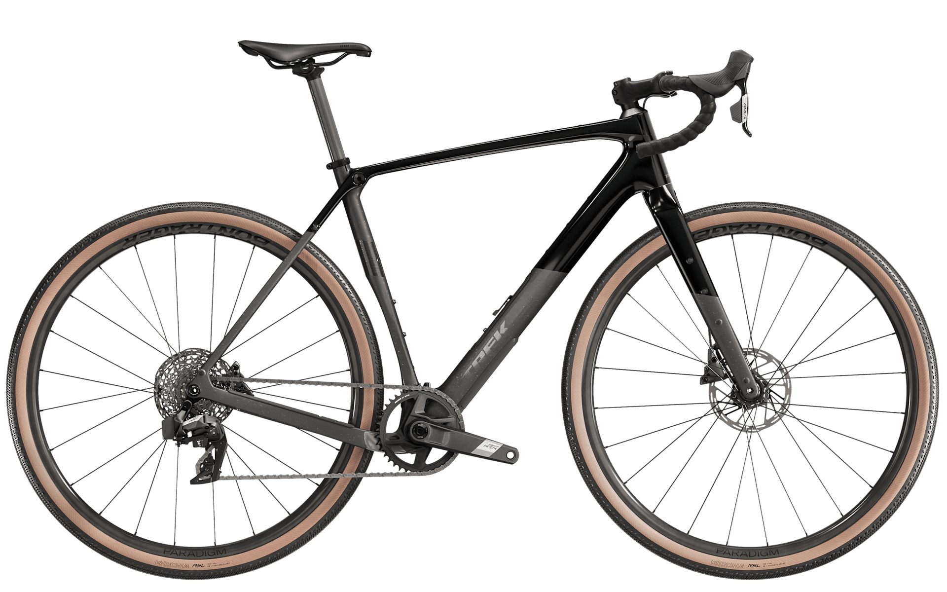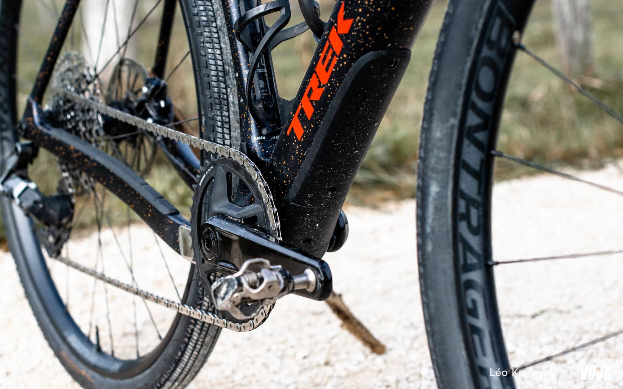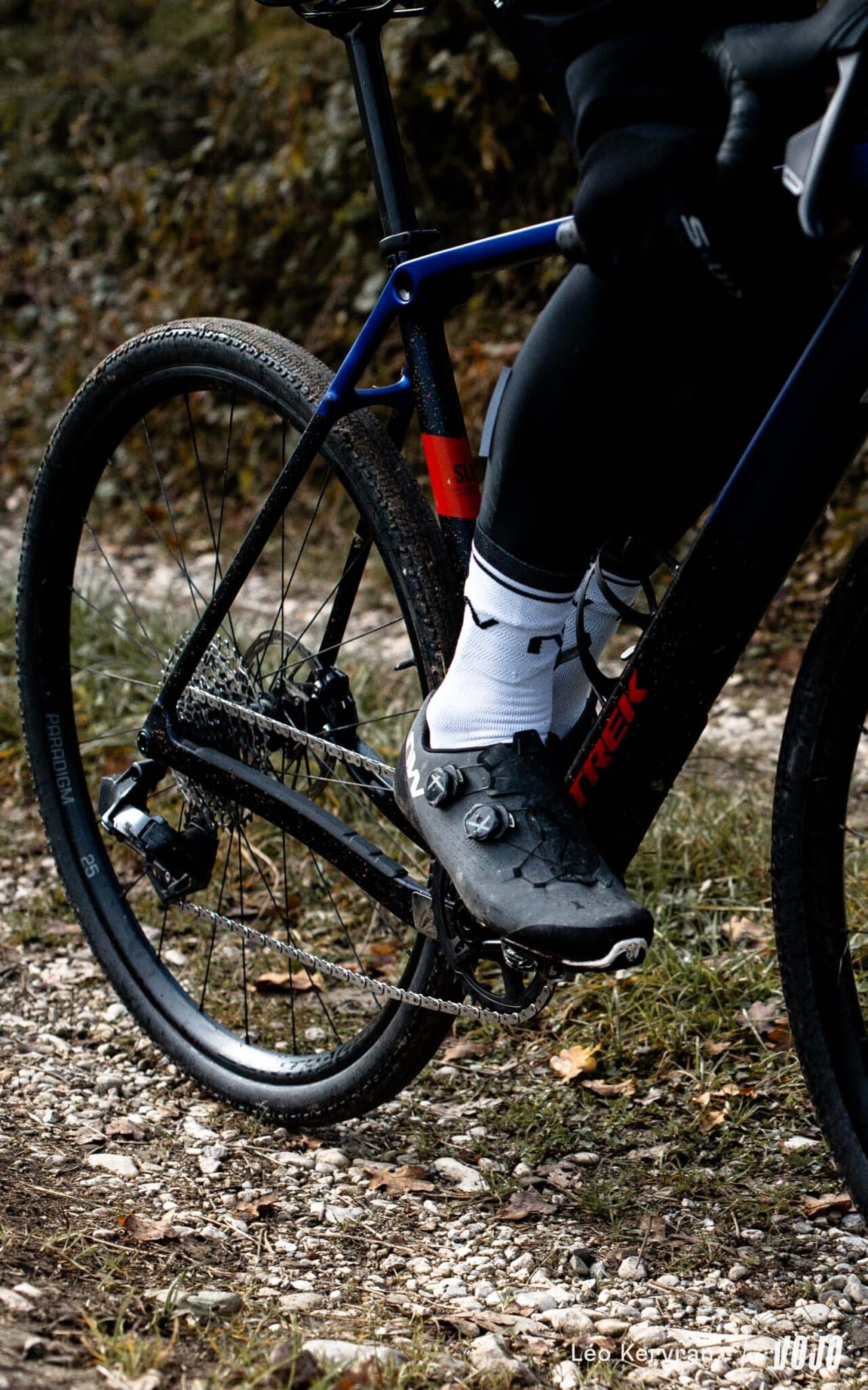 La famille Checkpoint SL compte trois modèles : le SL 5 (4059 €), le SL 6 ici essayé (4659 €) et le SL 7 (6559 €). Tous reposent sur le même cadre en carbone et sont équipés d’une transmission sans fil Sram XPLR mais la différence se fait sur le niveau de gamme des équipements : groupe Sram Apex XPLR AXS et roues Bontrager Paradigm SL (2,08 kg) pour le Checkpoint SL 5, groupe Sram Force XPLR AXS et roues Bontrager Aeolus Elite 35V en carbone (1660 g) sur le SL 7.