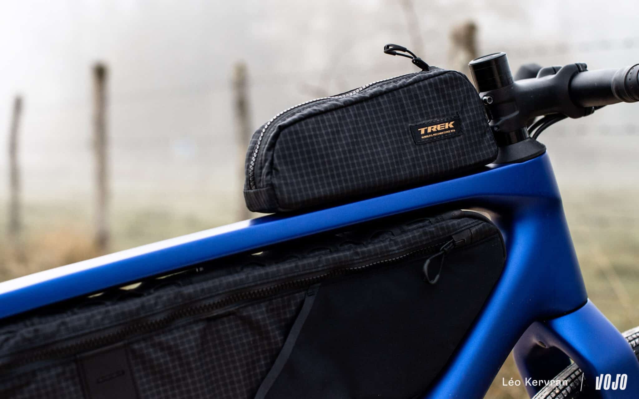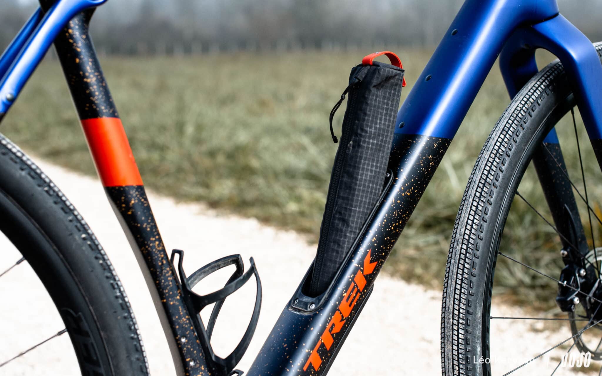 Concernant la boîte à gants, Trek annonce qu’elle a été revue et offre désormais plus de volume ainsi qu’un meilleur accès. Cette affirmation est difficile à vérifier sans avoir l’ancien modèle sous la main mais elle est de taille satisfaisante pour un gravel. A l’intérieur, on trouve une sacoche de belle facture et suffisamment grande pour accueillir une chambre à air.