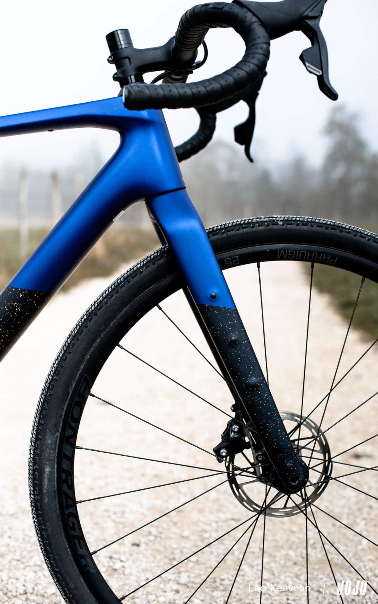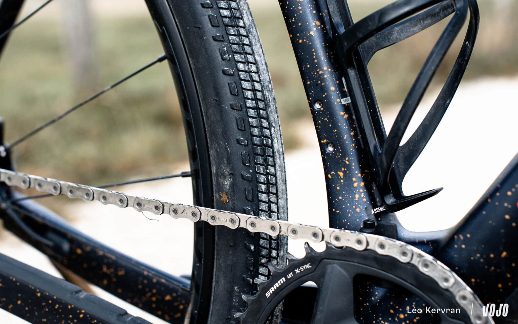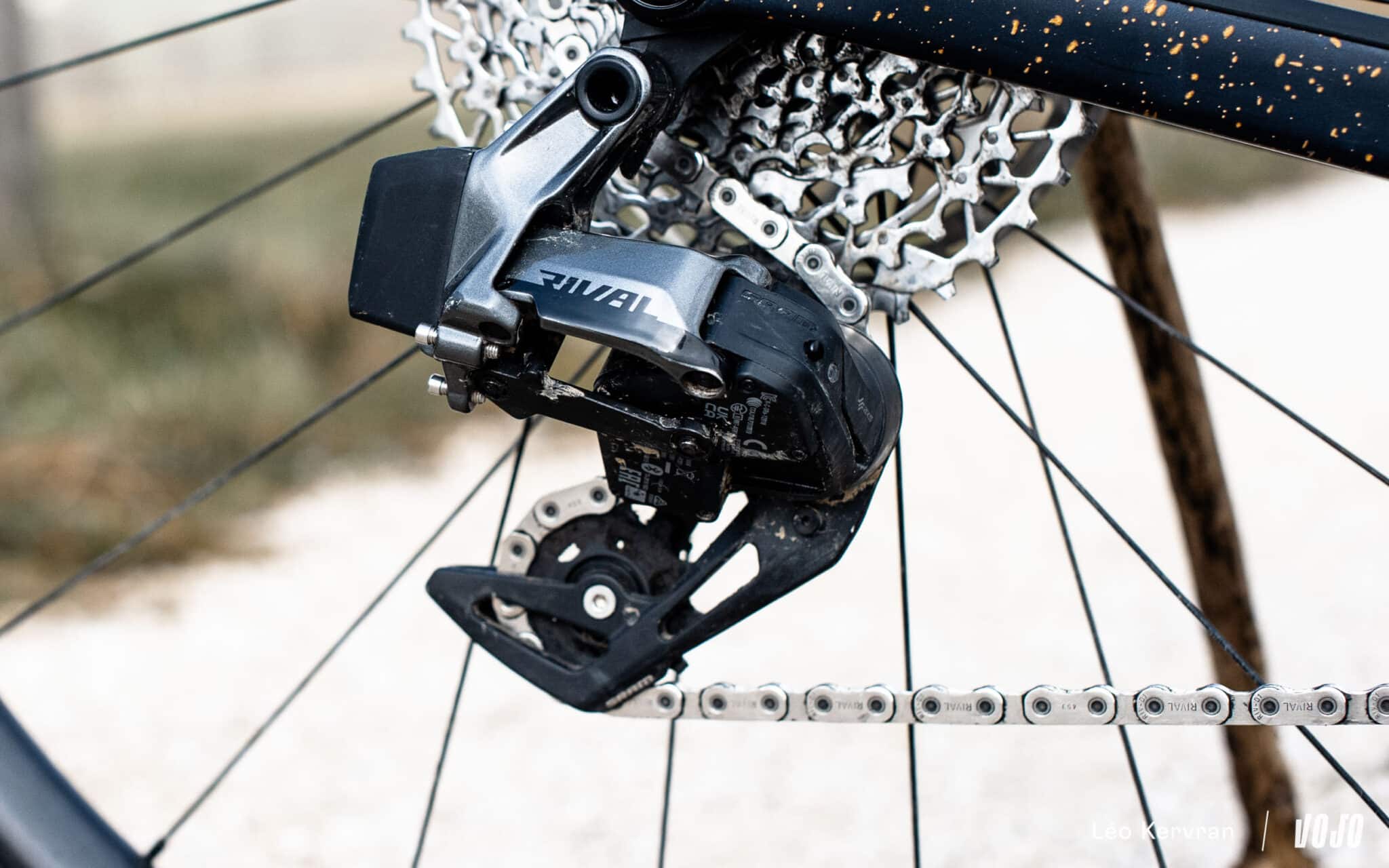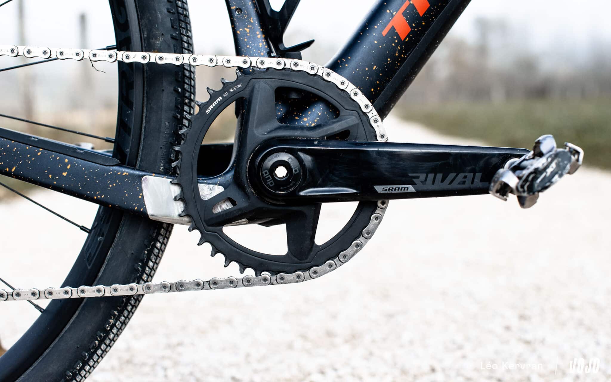 Si le monoplateau est la norme en VTT, il fait encore débat en gravel et on comprend pourquoi : sa simplicité a beaucoup d’avantages mais en termes de développements, un 40/10-44 n’est pas ce qu’il y a de plus polyvalent. Il faut un minimum d’entraînement et de force pour passer les côtes les plus raides sur le vélo et encore plus si on est chargé. Si votre terrain de jeu comporte de jolis talus et que vous n’aimez pas « tirer gros », un changement sera à prévoir de ce côté.