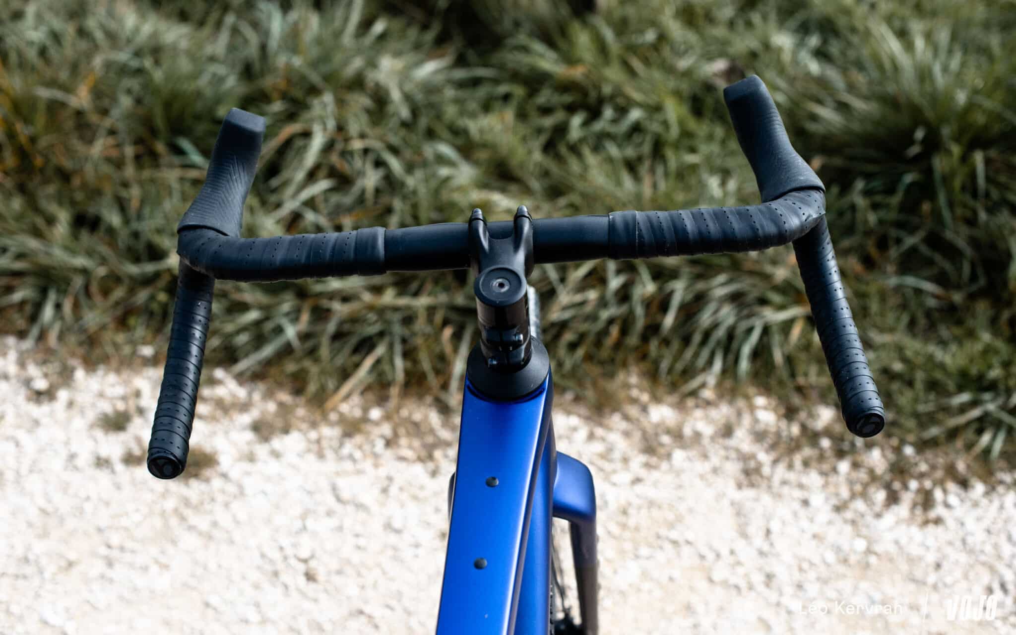 Sur le nouveau, c’est… différent. Commençons par les bases : la position sur le Checkpoint SL6 est naturellement équilibrée. On bénit Trek pour avoir choisi de conserver des entretoises de potence traditionnelles, qui passent aussi bien sous la potence qu’au-dessus sans avoir besoin de couper le pivot. Cela devient de plus en plus rare en gravel et c’est peut-être moins aérodynamique ou « intégré » mais, grâce à ça, on peut facilement modifier la position sans que les changements soient irréversibles. Plus sportive en descendant la potence, plus confortable en la remontant… Ici, on peut faire des essais ou adapter la position au programme sans penser à l’après.