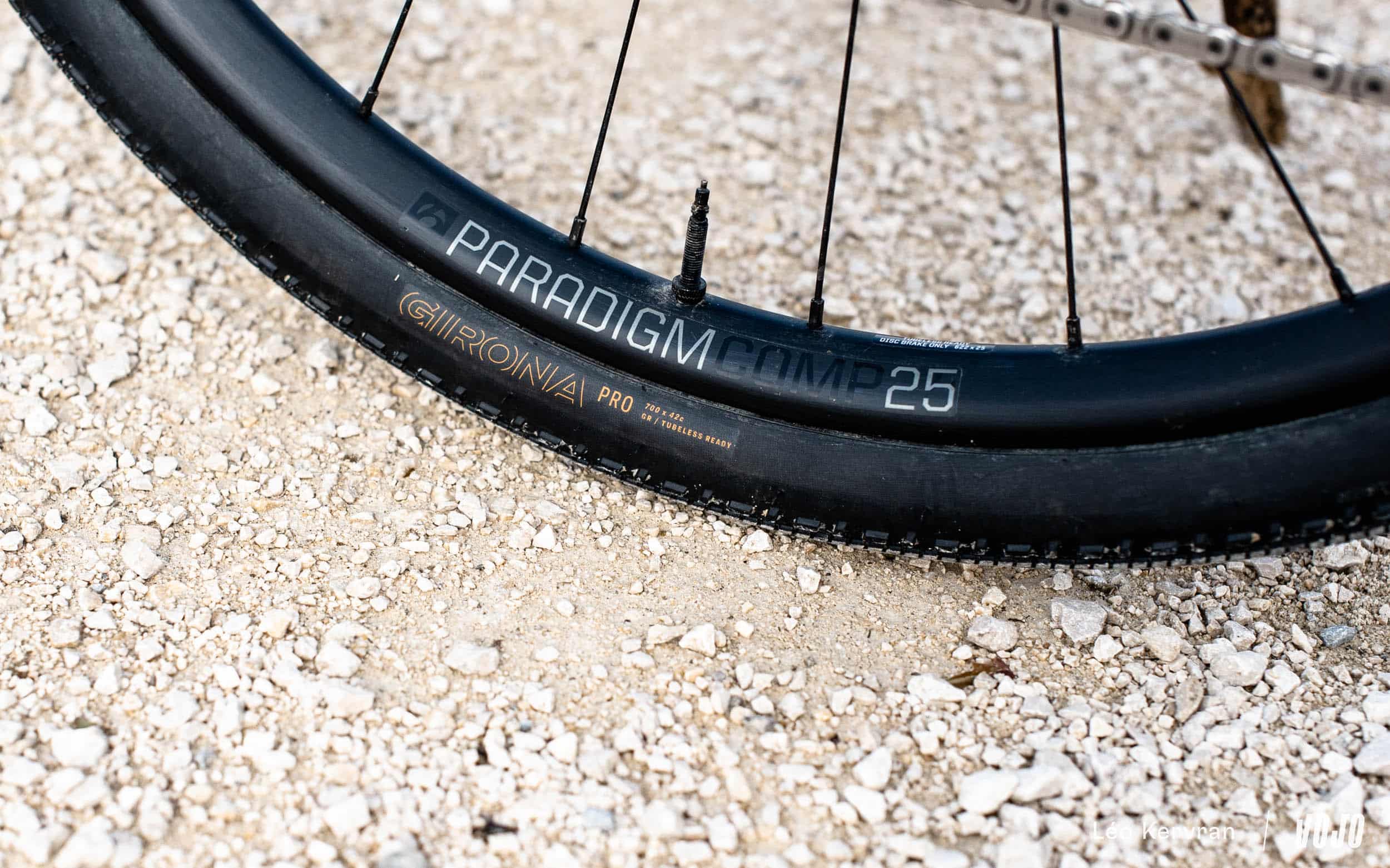 Tous les autres composants sont signés Bontrager, la marque d’accessoires de Trek. Côté train roulant, les roues Paradigm Comp 25 en aluminium (25 mm de largeur interne, 1780 g annoncés) sont toujours de la partie mais elles sont désormais chaussées de pneus Girona Pro en 42 mm de section officielle (mesurés à 43 mm), Bontrager ayant entièrement revu sa gamme de pneus tout-terrain cette année.