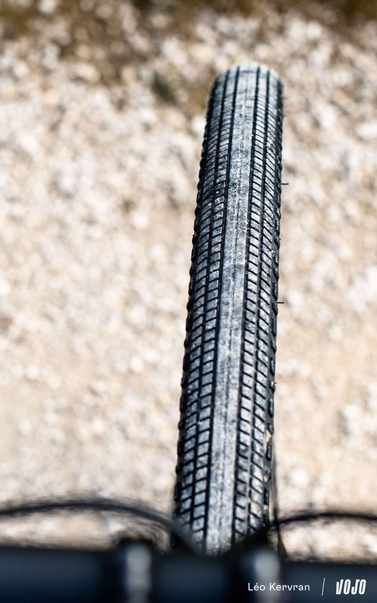 Malgré leur dessin très roulant, ils nous ont déçus par leur rendement très moyen sur route. La faute à une carcasse plutôt rigide dans cette version Pro (60 tpi), et on imagine que la déclinaison RSL en 220 tpi ferait bien mieux dans ce domaine. En revanche, le grip sur les pistes et sentiers nous a agréablement surpris, même si on regrette que les crampons latéraux ne soient pas un peu plus prononcés. Avec leur beau ballon très rond, ces pneus ont une tendance à flotter dans les grandes courbes sur sol fuyant et on ne sait pas toujours très bien si la roue va tenir sa trajectoire ou se mettre à glisser.