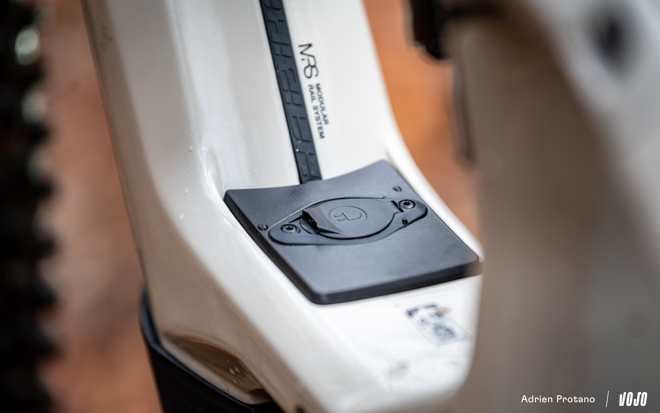 Pour animer ce petit (gros) monde, c’est une batterie choisie en conséquence de 750 Wh que l’on retrouve intégrée au sein du tube diagonal. Celle-ci est amovible si besoin, mais nécessite de démonter le cache du moteur accessible au moyen d’une clé Allen de 5mm. Notons qu’il est également possible de prolonger l’autonomie de 210 Wh grâce à la batterie additionnelle venant se fixer sur le MRS et vendue en option. La recharge s’effectue via le port de charge situé juste au-dessus du moteur. Remarquons que ce dernier n’est pas placé parfaitement à l’horizontale, mais inscrit dans une légère pente, de façon à ce que d’éventuelles saletés ou gouttes d’eau ne s’accumulent pas sur le port de charge.
