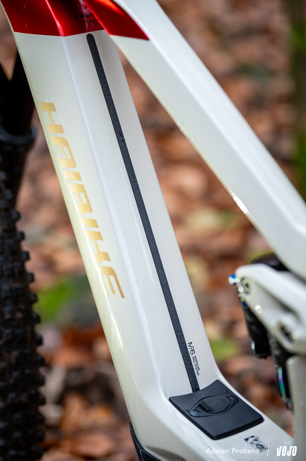 Présent sur les vélos de la marque depuis 2018, le rail du MRS (pour Modular Rail System) – qui s’étend tout du long du tube diagonal – se retrouve logiquement sur le Haibike Hybe. Le principe se veut assez simple et facile : offrir un support permettant d’accueillir différents accessoires comme un porte-bidon classique ou aimanté, un Range Extender, une sacoche ou encore un antivol. Cependant, en pratique, cela signifie qu’on ne peut pas monter un porte-bidon d’origine sur le vélo, à moins de se procurer le petit support adapté… De quoi se compliquer inutilement la tâche. Parfois, le mieux est l’ennemi du bien !
