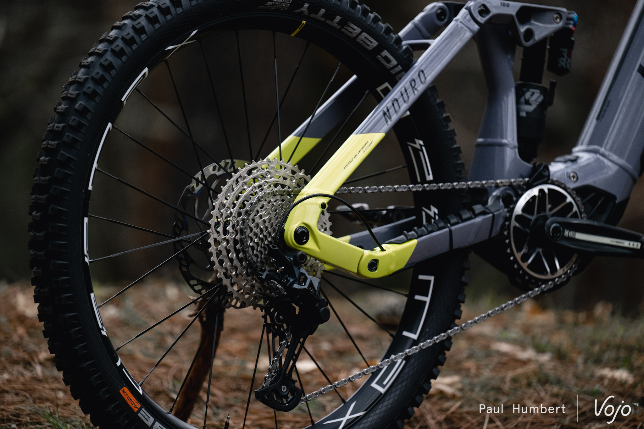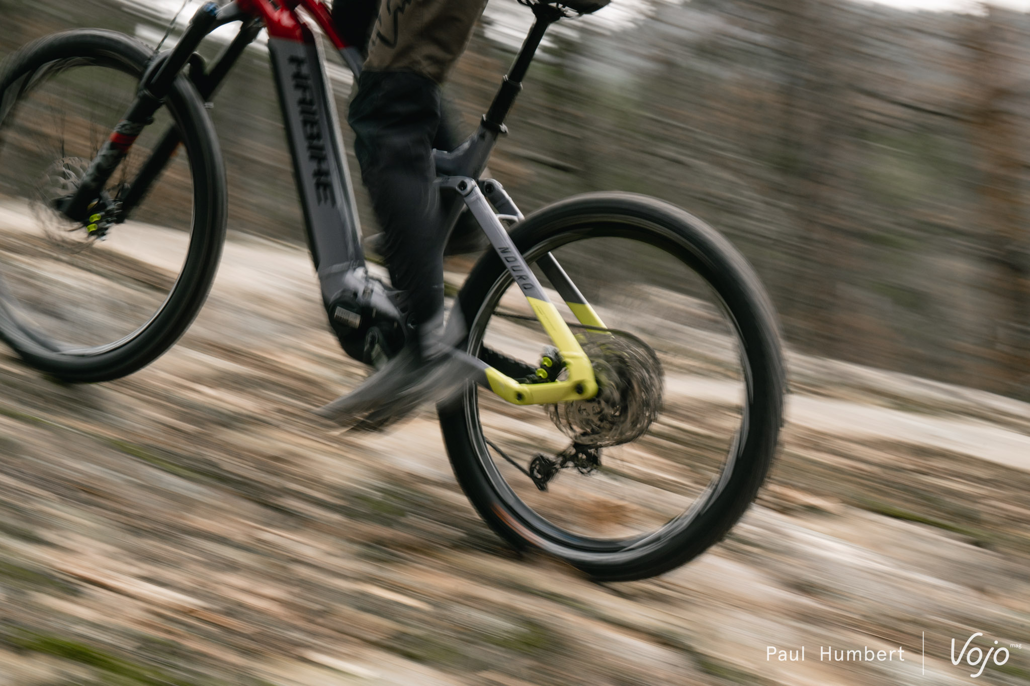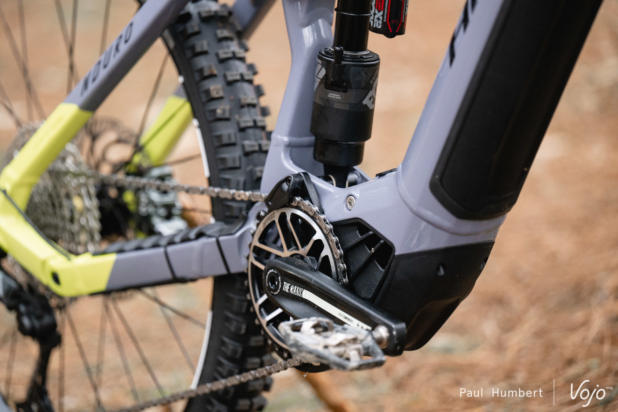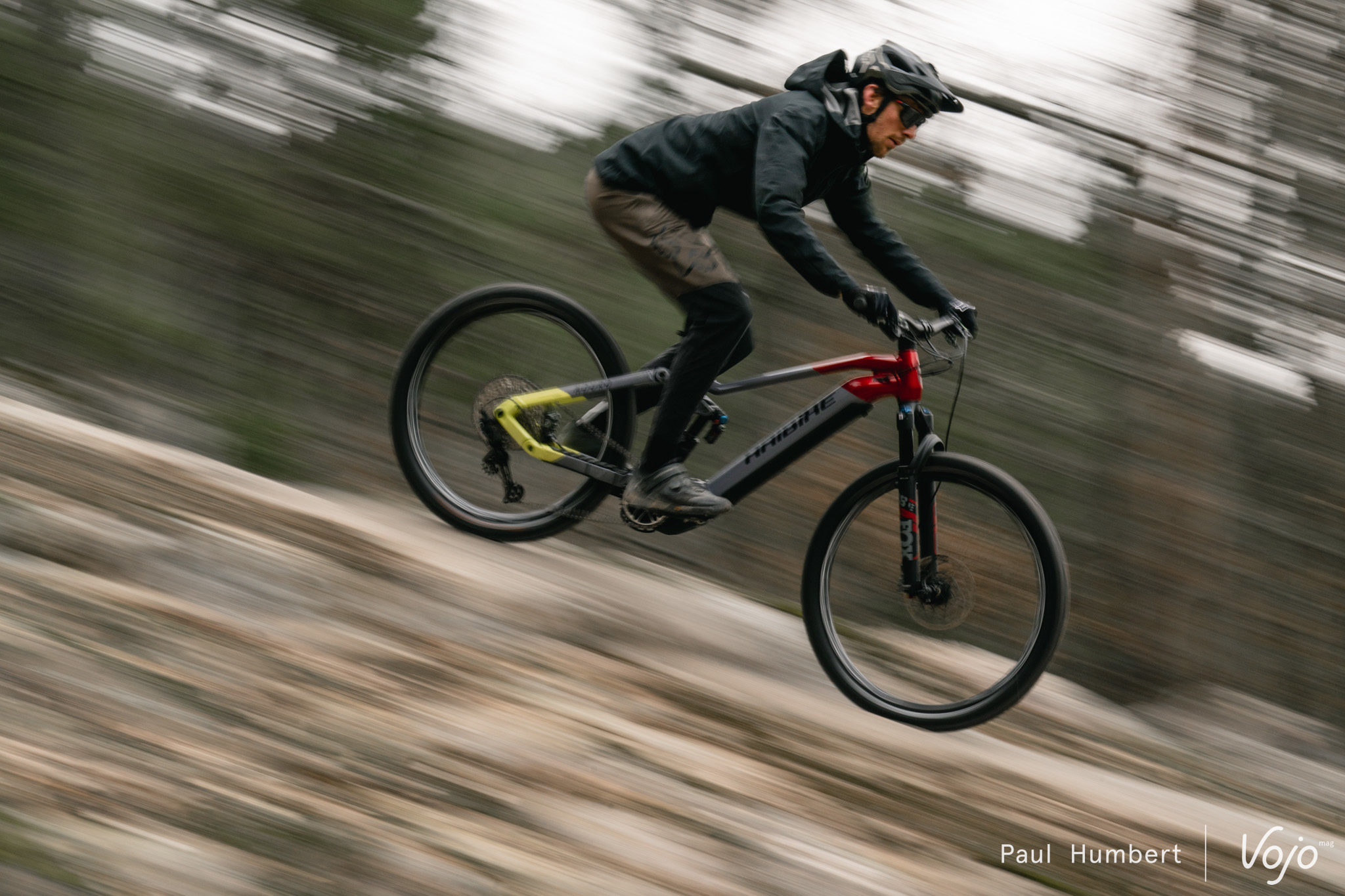 Dommage, car à côté de ça la géométrie est réussie et permet d’adopter une position confortable sans demander trop d’effort pour contrer le cabrage. C’était quelque chose qu’on appréhendait particulièrement car une fois que les 27 kg commencent à se lever il n’y a plus grand-chose à faire mais dans ce domaine, le Nduro fait aussi bien que la moyenne des e-bikes.