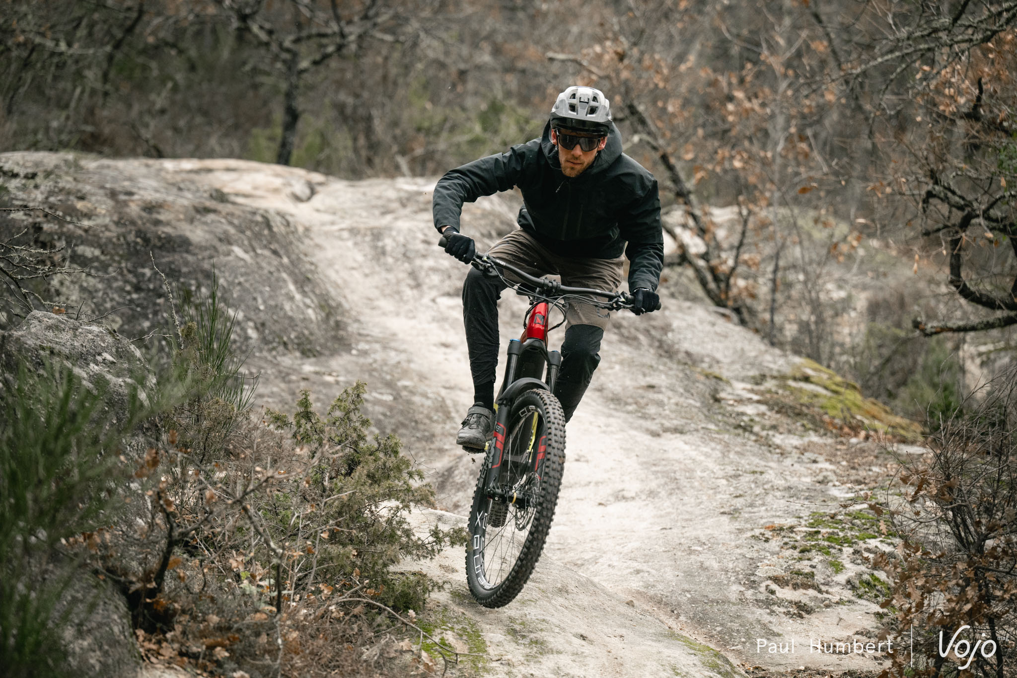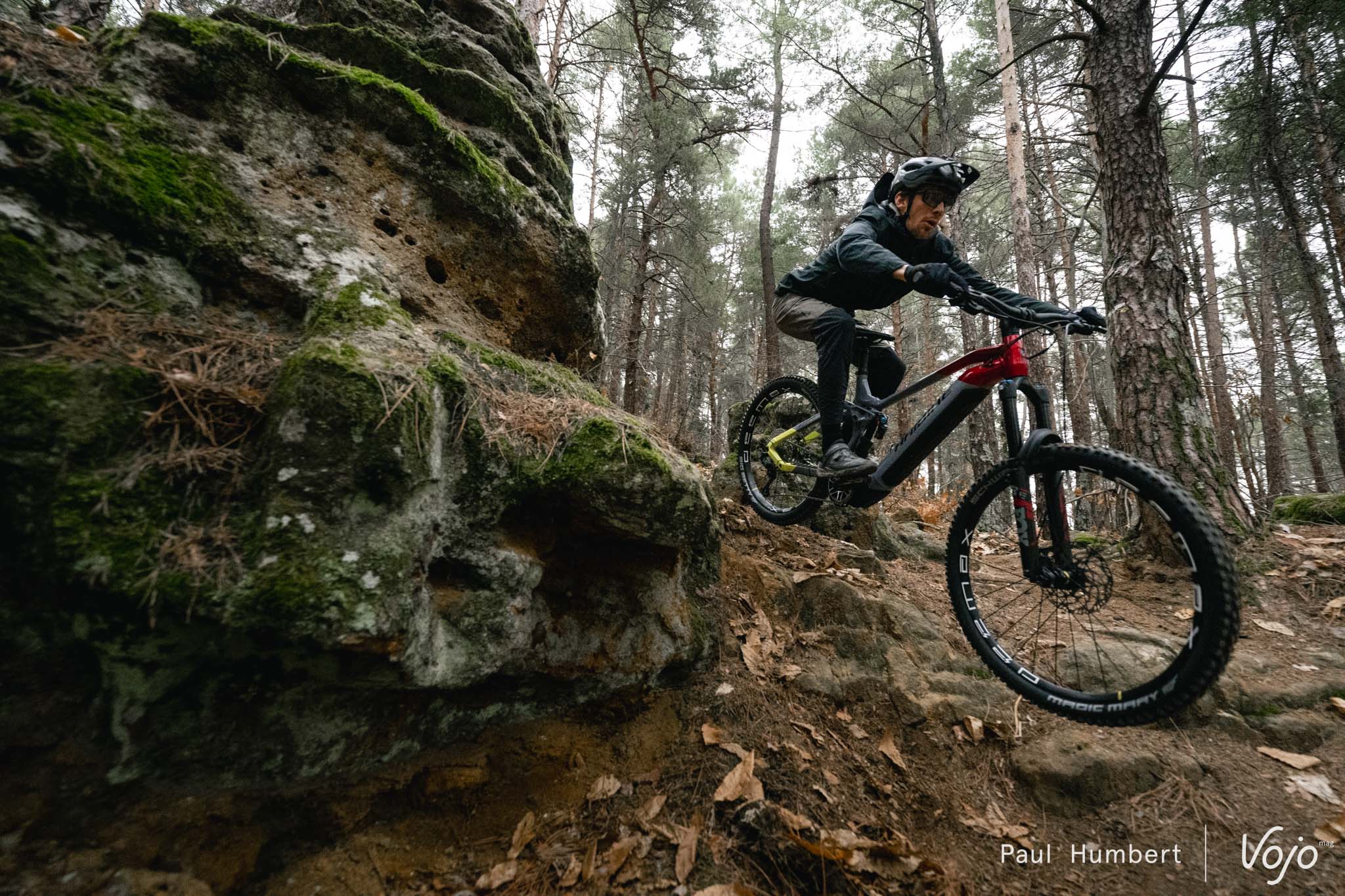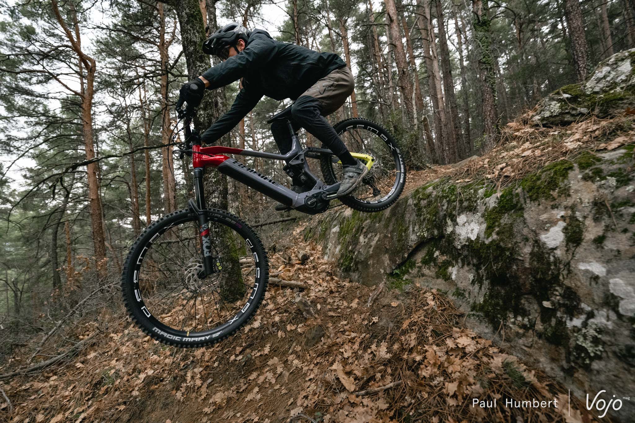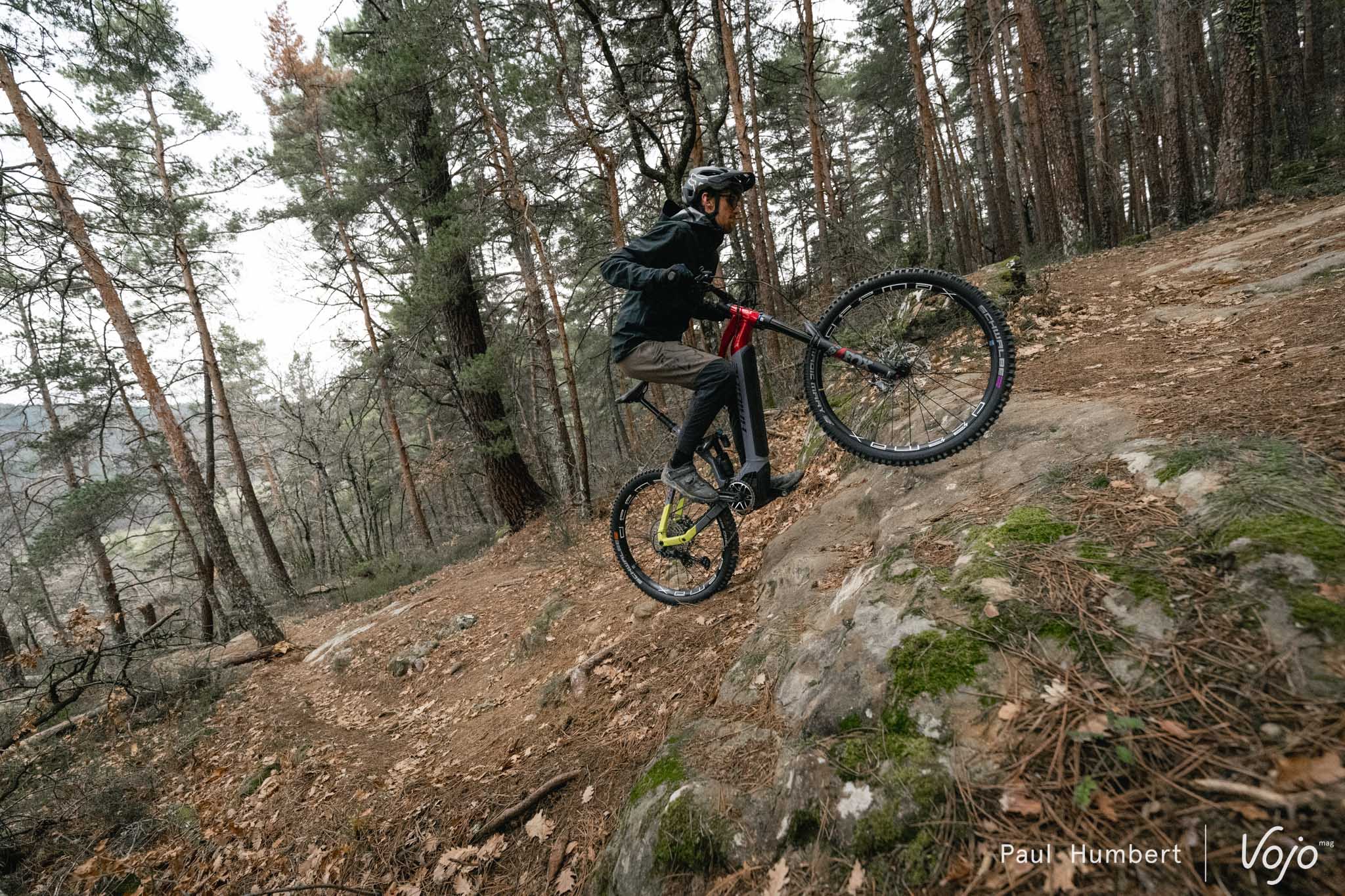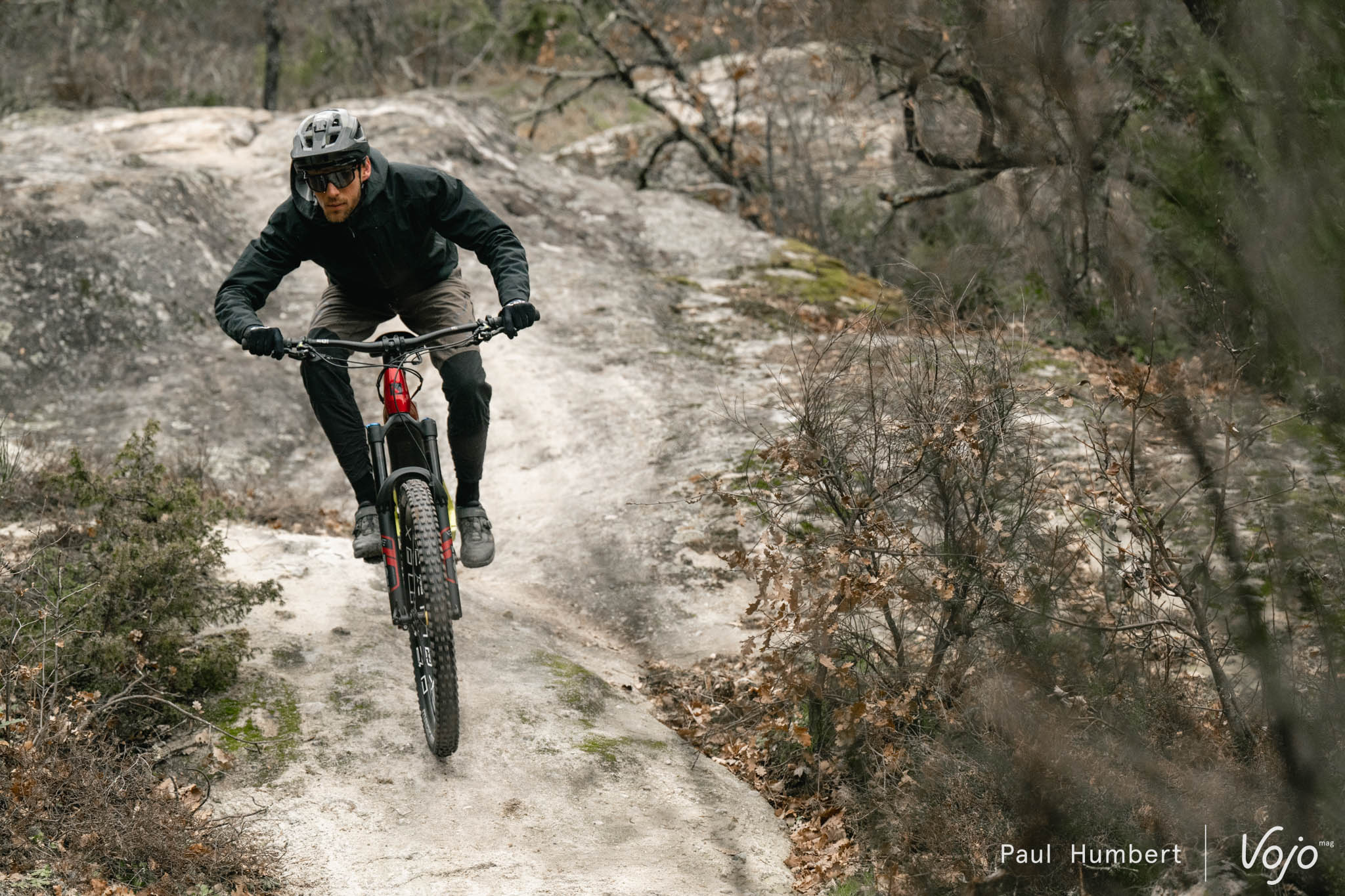 Dommage, car à côté de ça la géométrie est réussie et permet d’adopter une position confortable sans demander trop d’effort pour contrer le cabrage. C’était quelque chose qu’on appréhendait particulièrement car une fois que les 27 kg commencent à se lever il n’y a plus grand-chose à faire mais dans ce domaine, le Nduro fait aussi bien que la moyenne des e-bikes.