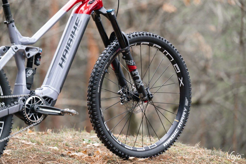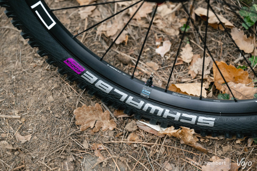 Le train roulant est également parfaitement adapté au programme puisqu’on profite de Mavic E-Deemax avec un Schwalbe Magic Mary Super Trail Super Soft à l’avant et un Schwalbe Big Betty Super Gravity Soft à l’arrière. Carcasses solides, gommes tendre, on aimerait voir ça plus souvent !