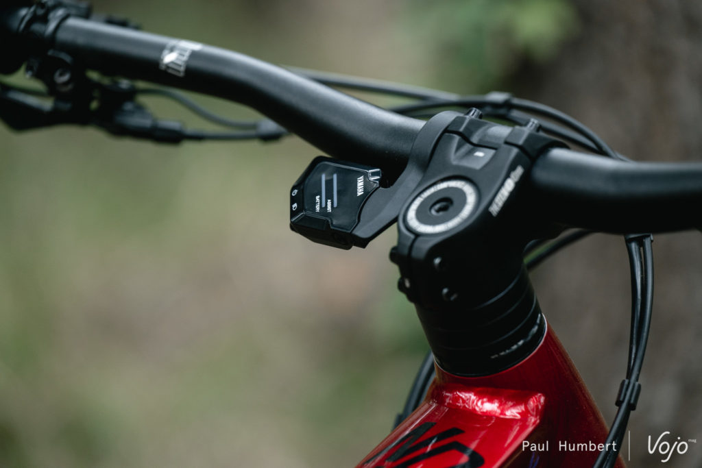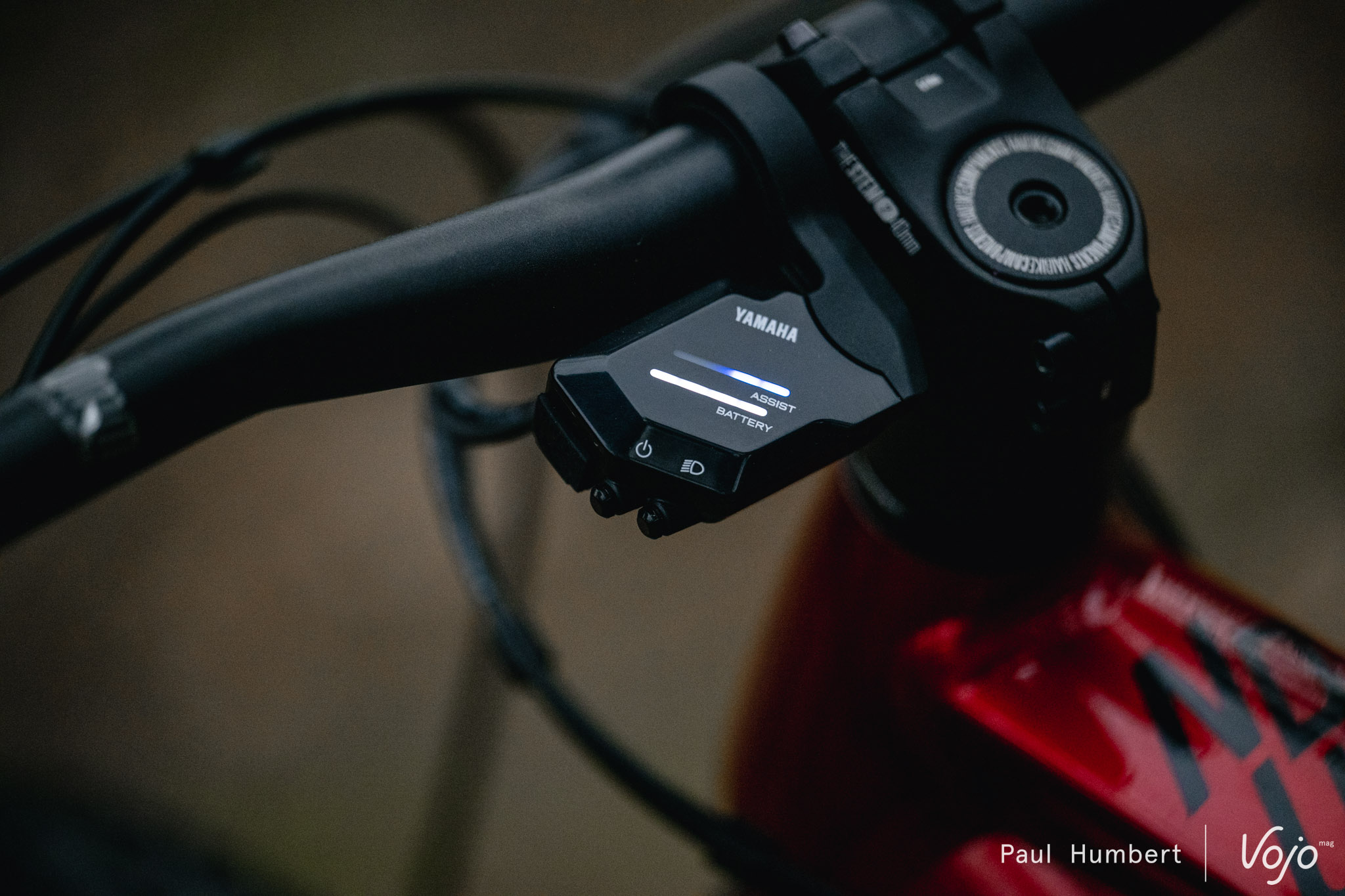 Côté gestion, on a une petite commande à côté de la poignée et un affichage très simple rangé derrière le cintre, un peu à la manière de Shimano. C’est bien vu car le boîtier est ainsi bien protégé en cas de chute mais la qualité de fabrication laisse un peu à désirer. Les plastiques ne sont pas très flatteurs et le support n’est pas très rigide, ce qui fait que le système bouge facilement quand on le manipule.
