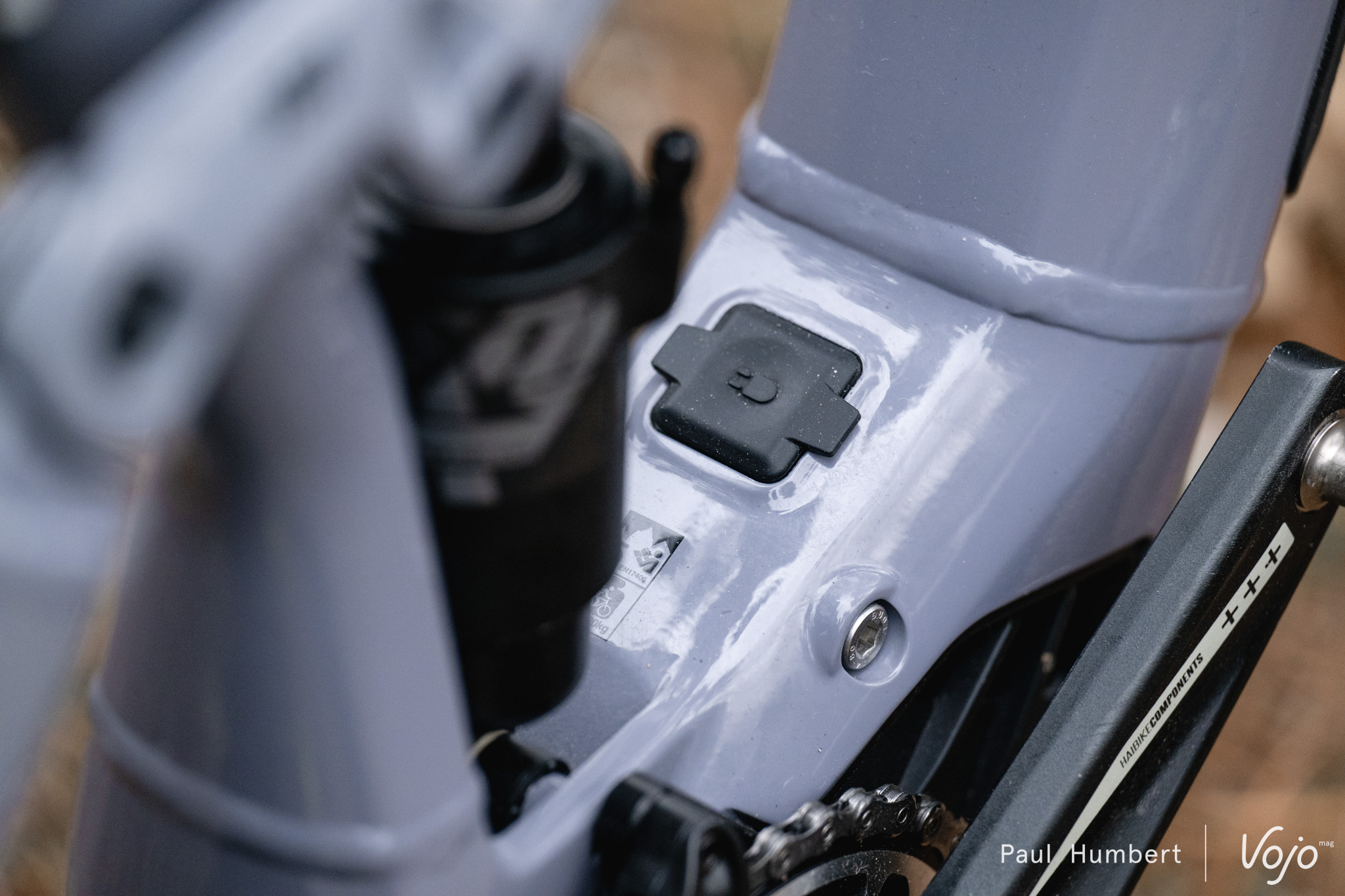 La batterie est comme de coutume logée dans le tube diagonal et maintenue par une serrure à clé, ce qui permet de la retirer facilement si on souhaite la charger séparément plutôt que sur le vélo. Le port de chargement sur vélo est situé au-dessus du moteur.