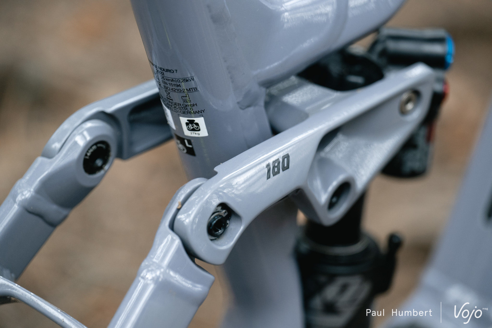 On était assez curieux de voir ce que la marque allemande pouvait proposer avec autant de débattement. 180 mm, ça ne se gère pas comme 150 mm et si ça peut offrir plus de marge pour avoir un début de course sensible sans sacrifier les plus gros chocs, ça peut aussi devenir très compliqué au pédalage si le comportement est mal géré.