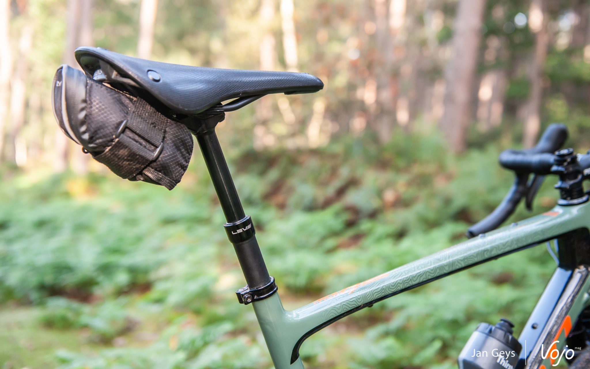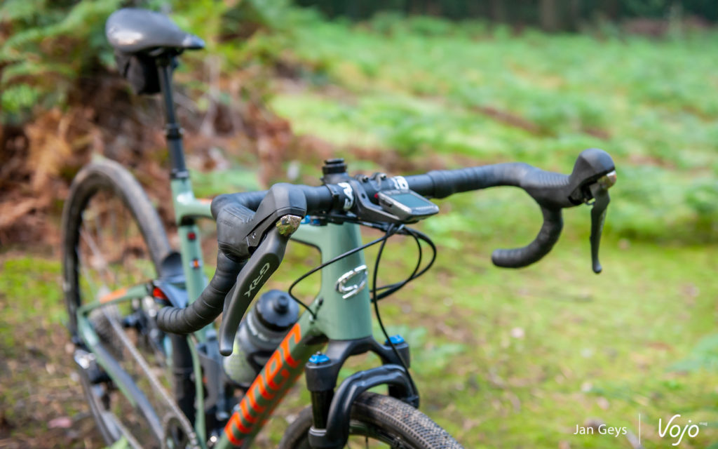 Une tige de selle télescopique a-t-elle un véritable intérêt en gravel ou s’agit-il d’un gadget technologique ? Sur ce point, les avis divergent. Notre testeur/rédacteur néerlandophone est arrivé à la conclusion qu’il utilisait assez fréquemment l’amortisseur arrière et son verrouillage, mais que la tige n’était pas réellement utilisée. Soit elle n’était pas nécessaire, soit la descente était déjà passée. De son côté, Olivier a un tout autre ressenti : habitué à cet accessoire sur quasi tous les VTT qu’il roule, il en « jouait » constamment pour tirer le meilleur parti des descentes techniques, et même tout simplement pour avoir plus d’aisance en abaissant le centre de gravité dans les descentes rapides… y compris sur route. Question de terrain de pratique, de pilote et d’habitude, donc.