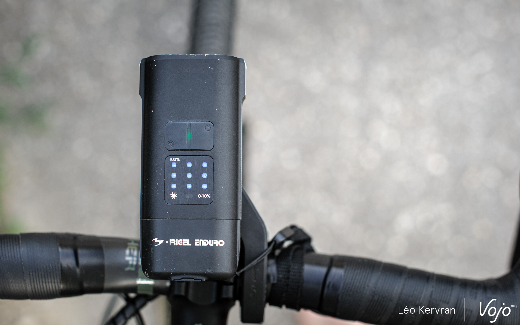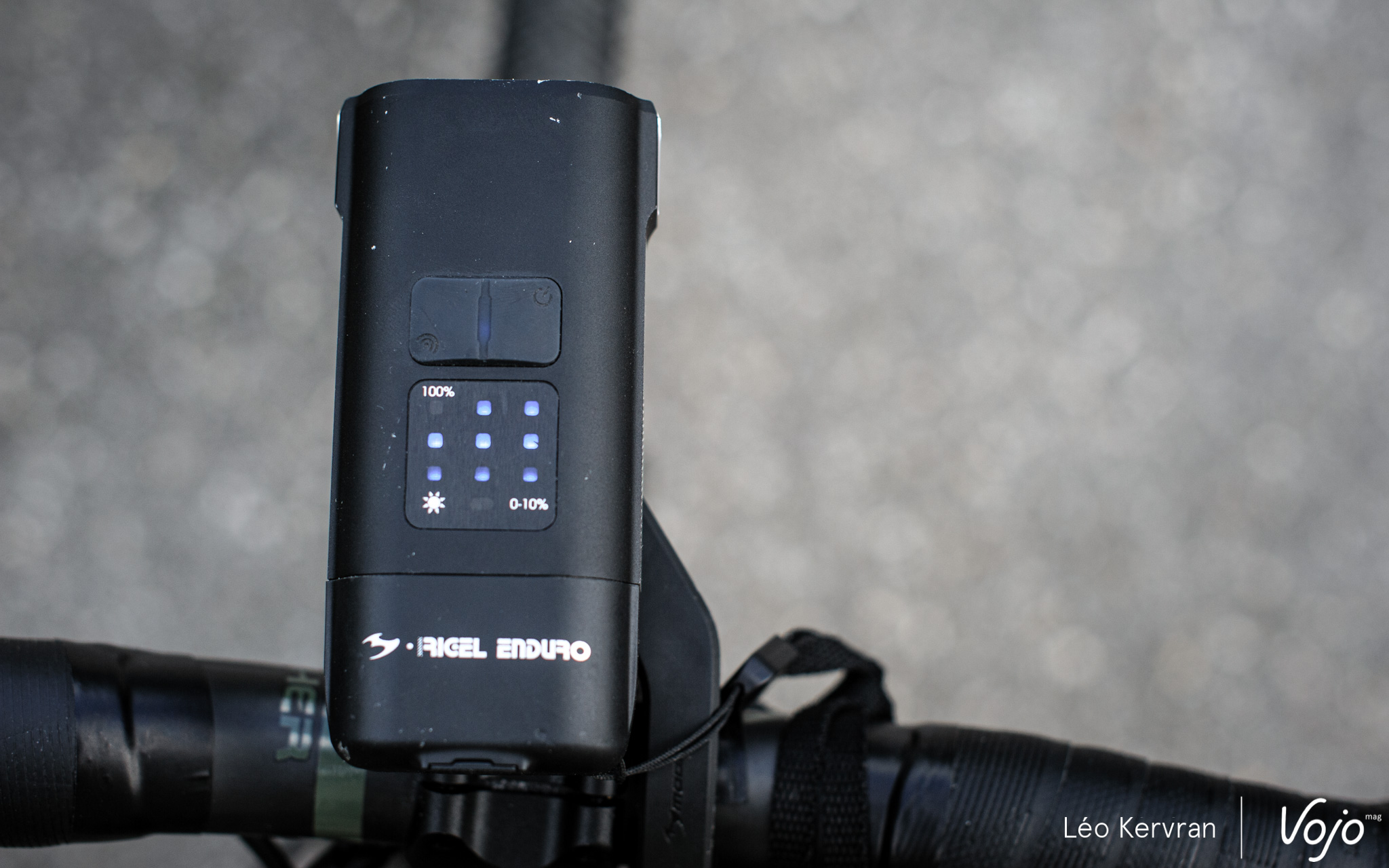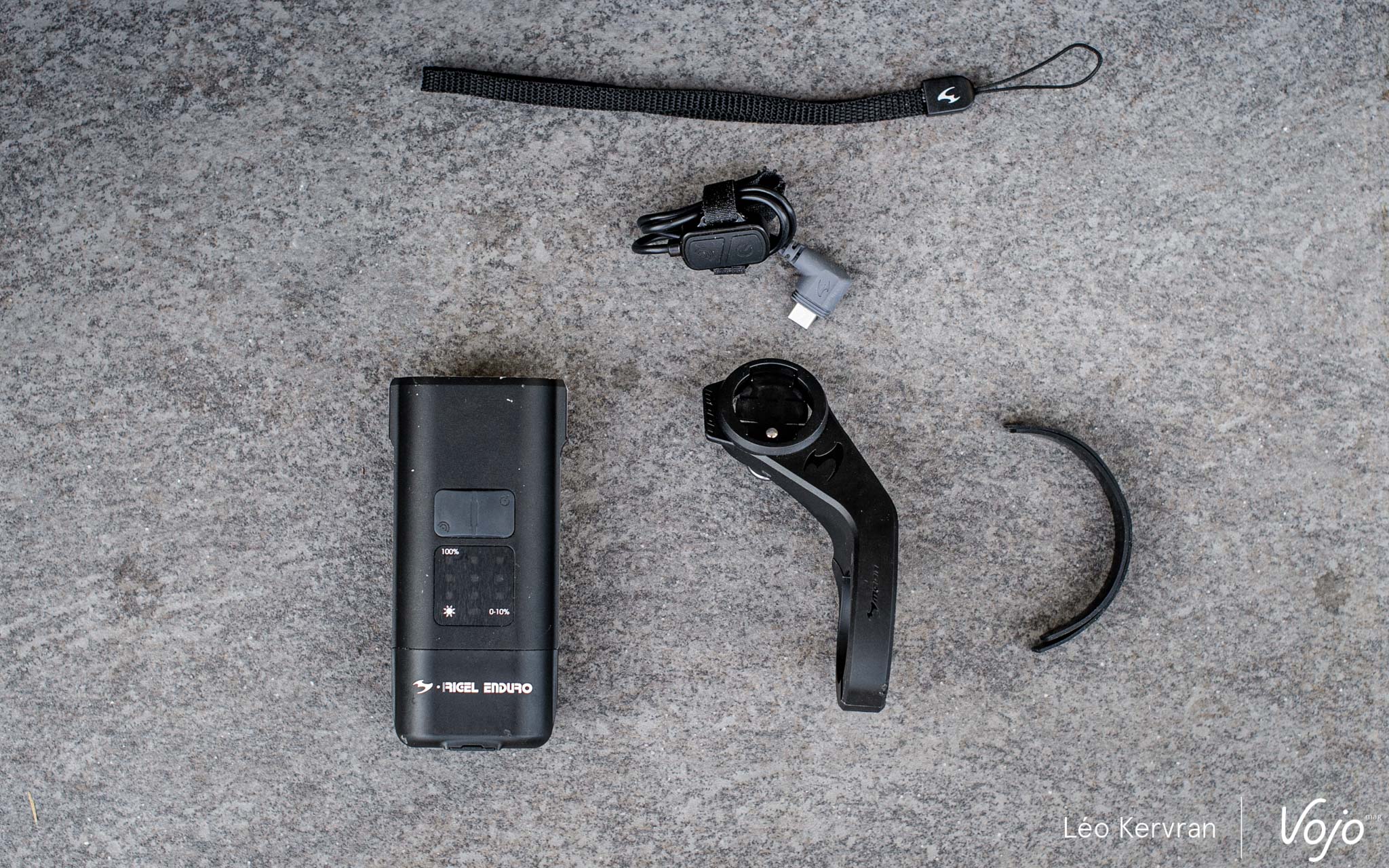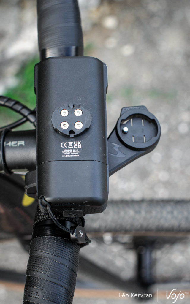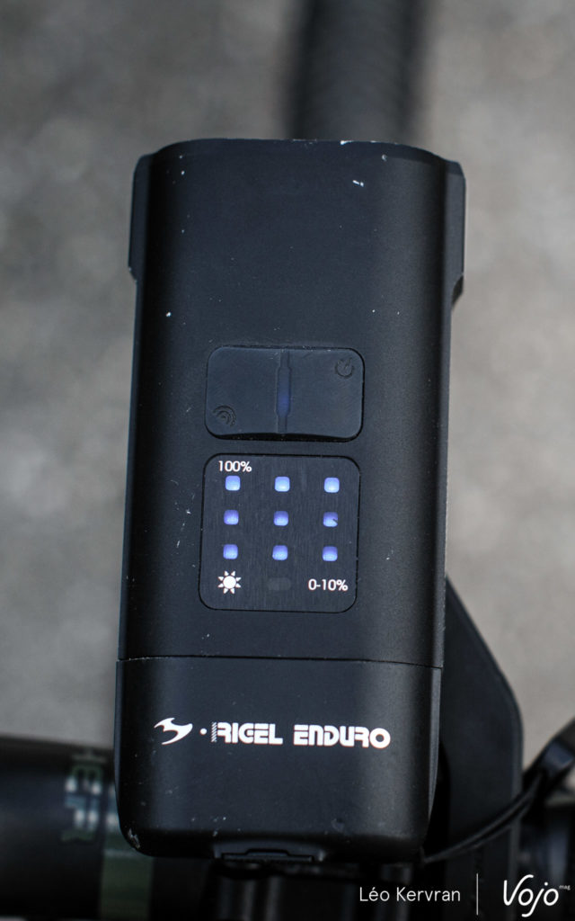 A la réception, la Rigel Enduro arrive avec son câble de charge, un support pour cintre, une télécommande à brancher sur la lampe en USB-C pour la contrôler sans lâcher le guidon et un petit filin pour la sécuriser en plus, à la manière des compteurs Garmin. C’est complet, c’est de bonne facture (le support, en particulier, inspire confiance) et la lampe est très belle. Pour un produit haut de gamme, on trouve cependant qu’il manque une petite pochette ou boîte pour ranger tout ce petit monde ensemble lorsqu’on n’en a pas besoin.