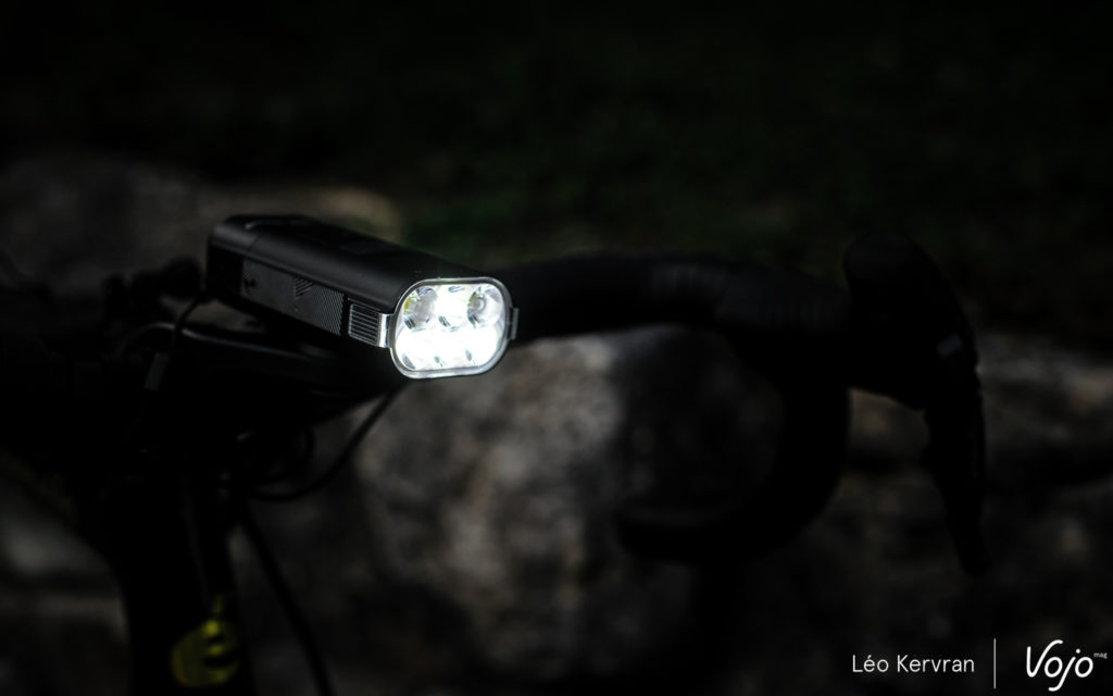 Côté autonomie, on a utilisé la lampe sur la dernière édition des Crapauds par exemple et il nous a fallu deux tours complets, soit un peu plus de 80 minutes, pour faire tomber la lampe à 80 % de batterie en roulant uniquement sur un mode 2 légèrement personnalisé. C’est un peu mieux que ce qu’annonce la marque, qui évoque 4h45 en configuration de base, alors qu’on avait l’impression d’avoir plus de puissance. De très bon augure ! Jusque-là, nous n’avons pas rencontré de problème de surchauffe mais la lampe dispose d’un programme de protection qui réduit l’intensité lumineuse si cela devait arriver.