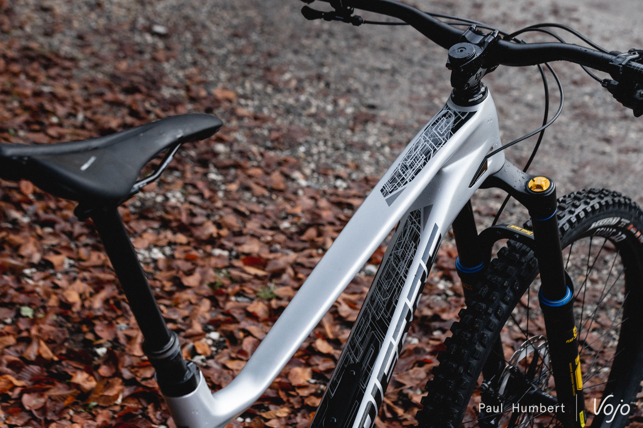 On remarque également que les bases sont plutôt courtes, seulement 433 mm. Angle de direction pas trop couché, vélo pas très long… Voilà qui dessine les contours d’une machine bien vivante sur le terrain.
