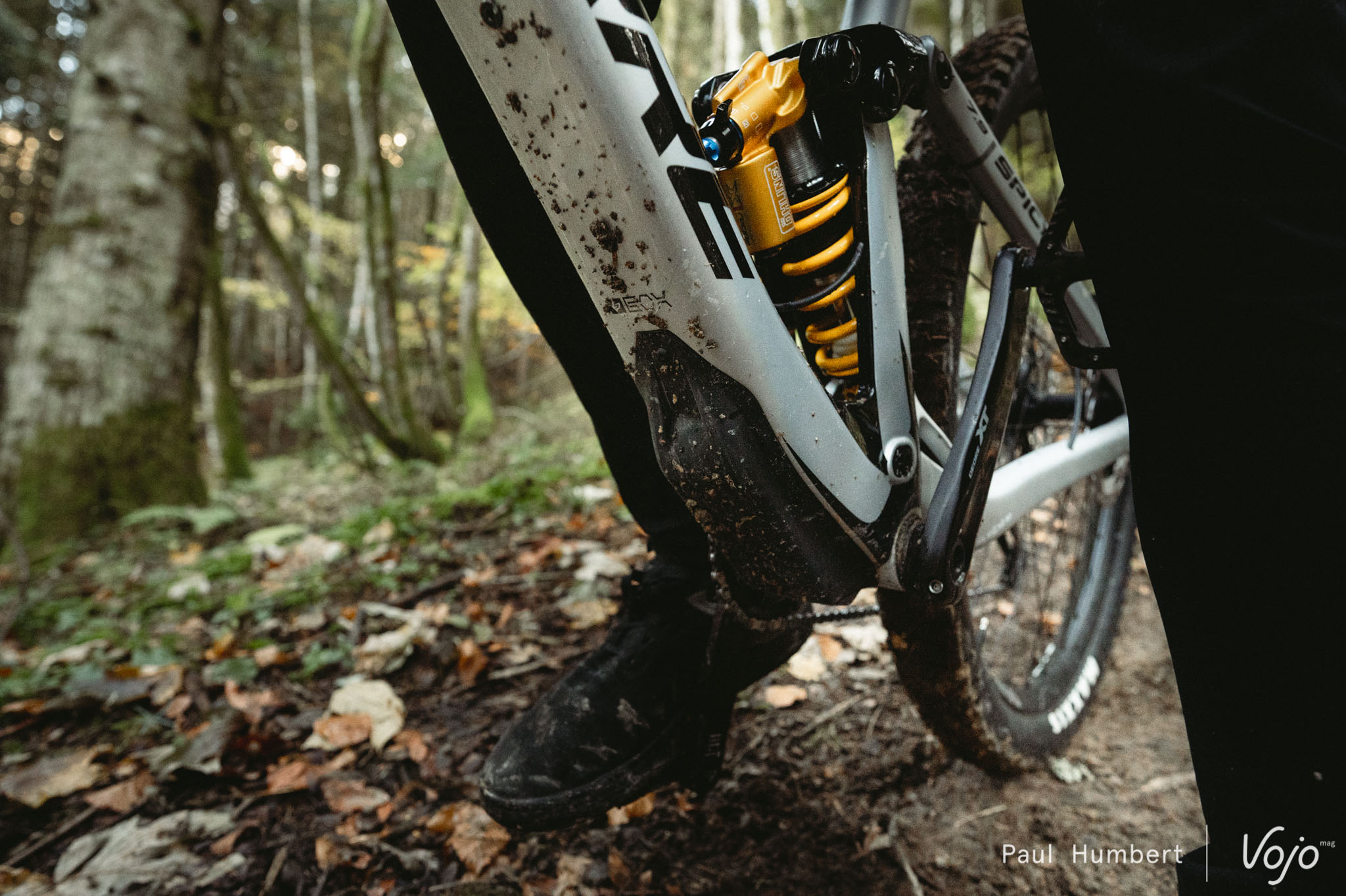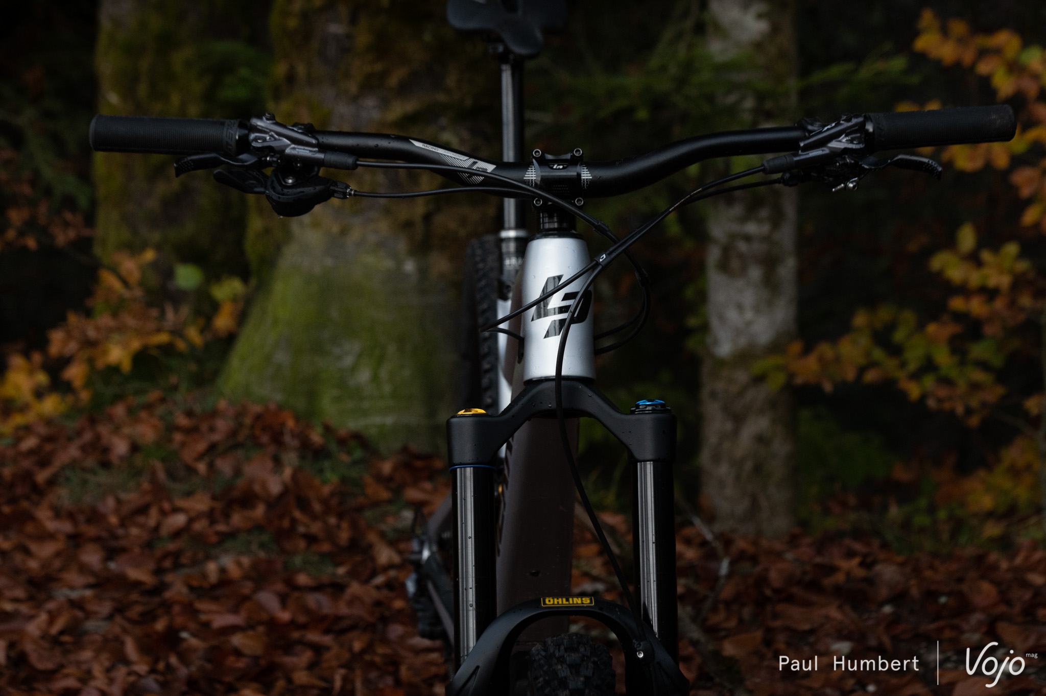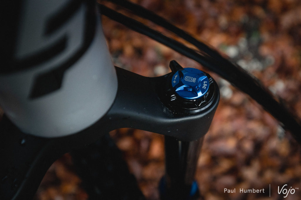 Toutefois, ce comportement ferme est cohérent avec celui qu’offre la fourche, elle aussi réglée en suivant les préconisations d’Ohlins. Le vélo se présente dans une configuration « race », performante et efficace à condition de rouler à fond. Autrement, le support à mi-course est tel qu’on reste tout le temps dans le haut du débattement, avec peu de sensibilité sur les petits chocs. Avec un ressort plus souple à l’arrière, j’aurais certainement diminué un peu la pression pour trouver plus d’onctuosité et fermé un peu les compressions pour éviter d’avaler le débattement trop vite, mais ici, conserver l’équilibre du vélo était plus intéressant.