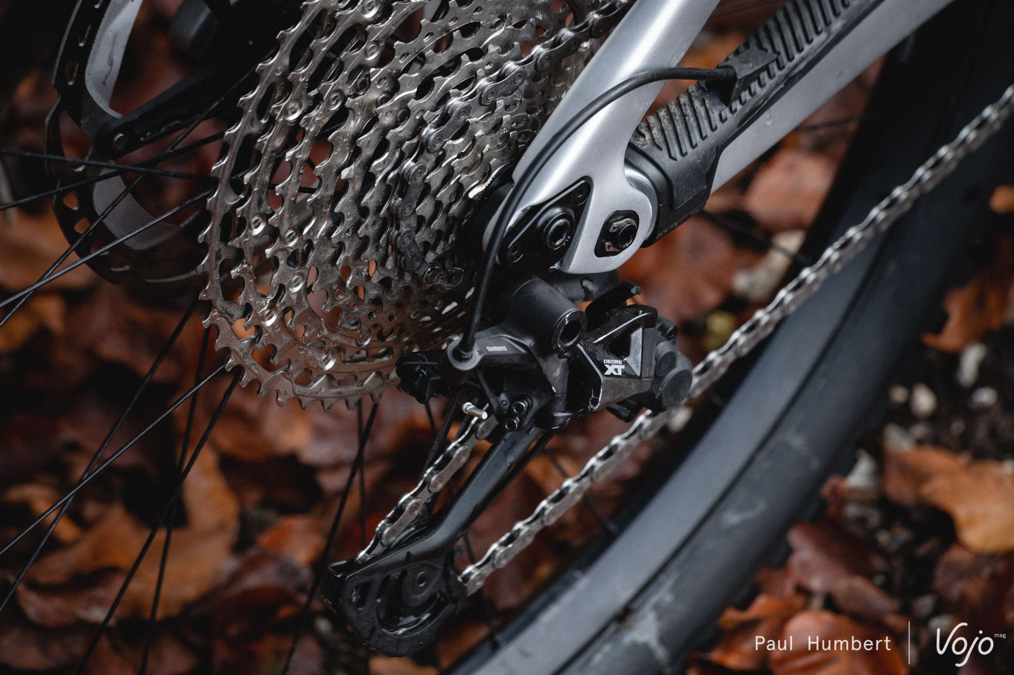 C’est finalement au niveau de la transmission que la marque a fait des économies. A côté d’un pédalier et un dérailleur Shimano Deore XT, on a du SLX (manette, chaîne) voire du Deore (cassette). Cela se traduit par un surpoids certain face à une transmission complète en Deore XT (+ 130 g pour la seule cassette) et un fonctionnement un poil moins rapide, principalement à cause de la manette. Cependant, les passages de rapports sont aussi fluides et précis que sur les groupes plus haut de gamme et c’est l’essentiel.