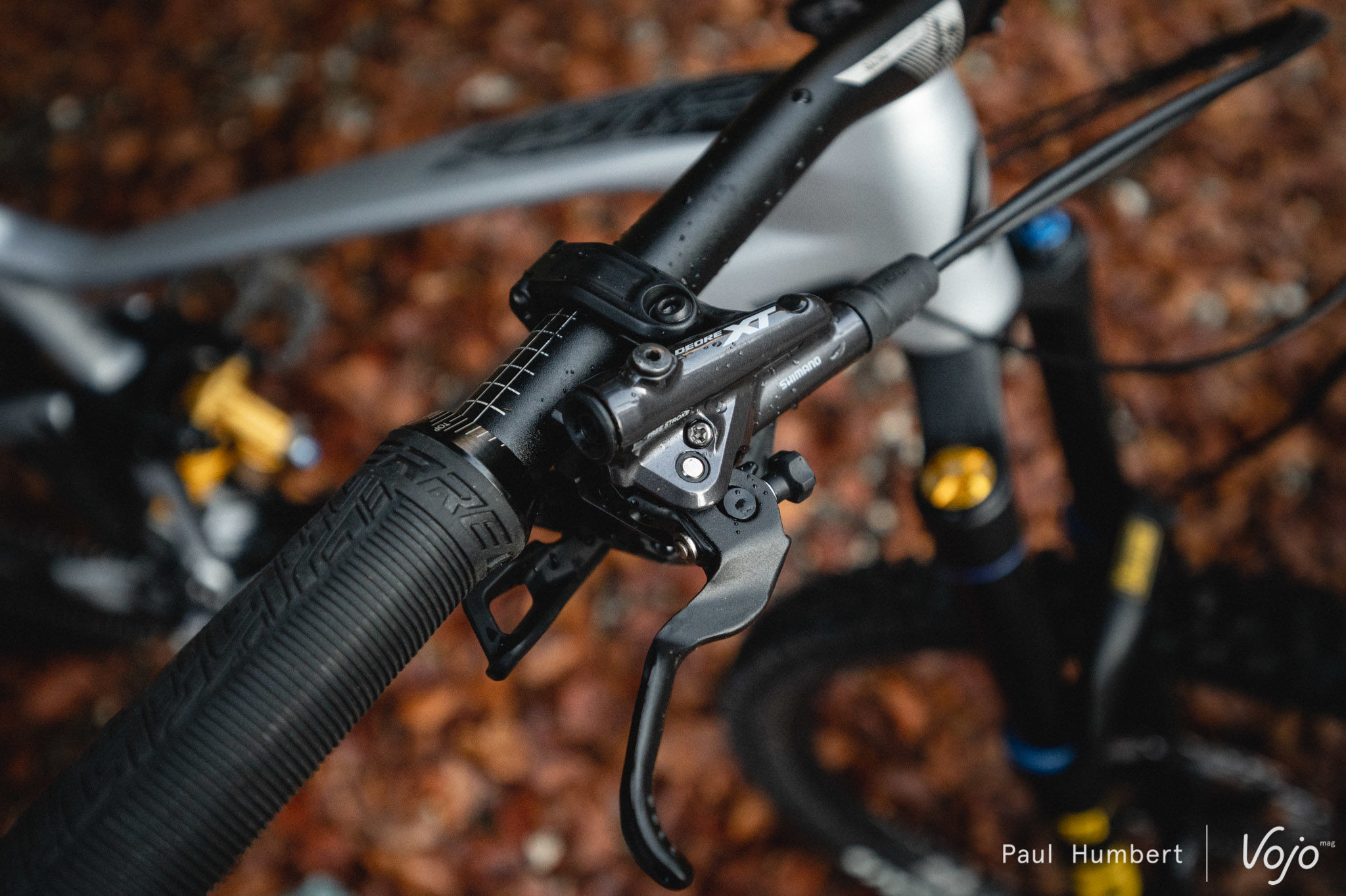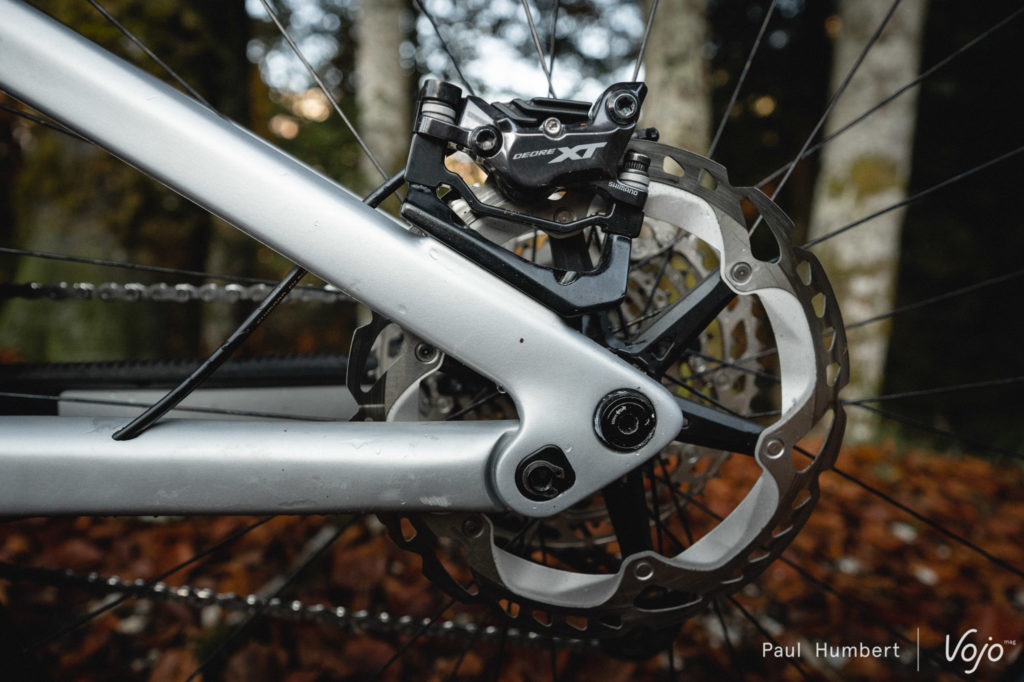 Pas du côté des freins en tout cas puisque le vélo est équipé des excellents Shimano Deore XT 4 pistons, en disques de 203 mm devant comme derrière.