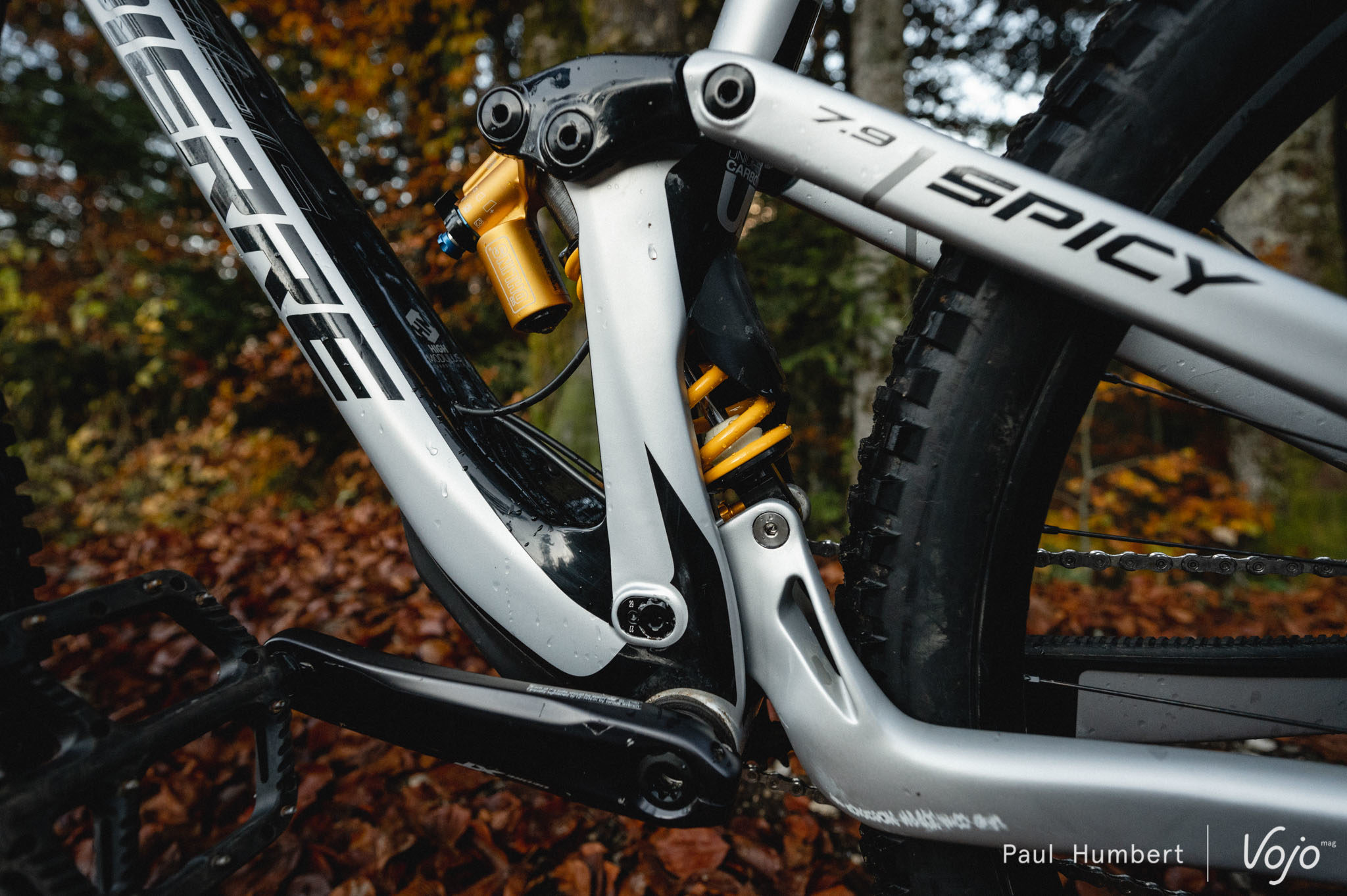 Il n’est pas tout neuf, mais il truste depuis son lancement les podiums des EWS entre les mains d’Isabeau Courdurier ou d’Adrien Dailly, et on avait beaucoup aimé son petit frère presque jumeau, le Zesty AM. Cela nous faisait donc deux bonnes raisons de tester le Lapierre Spicy, la machine d’enduro de la marque dijonnaise ! Et pour pimenter un peu les choses, c’est sur la très attirante version CF 7.9 et ses singulières suspensions Öhlins, peu courantes sur des vélos de séries, que nous avons passé ces derniers mois.