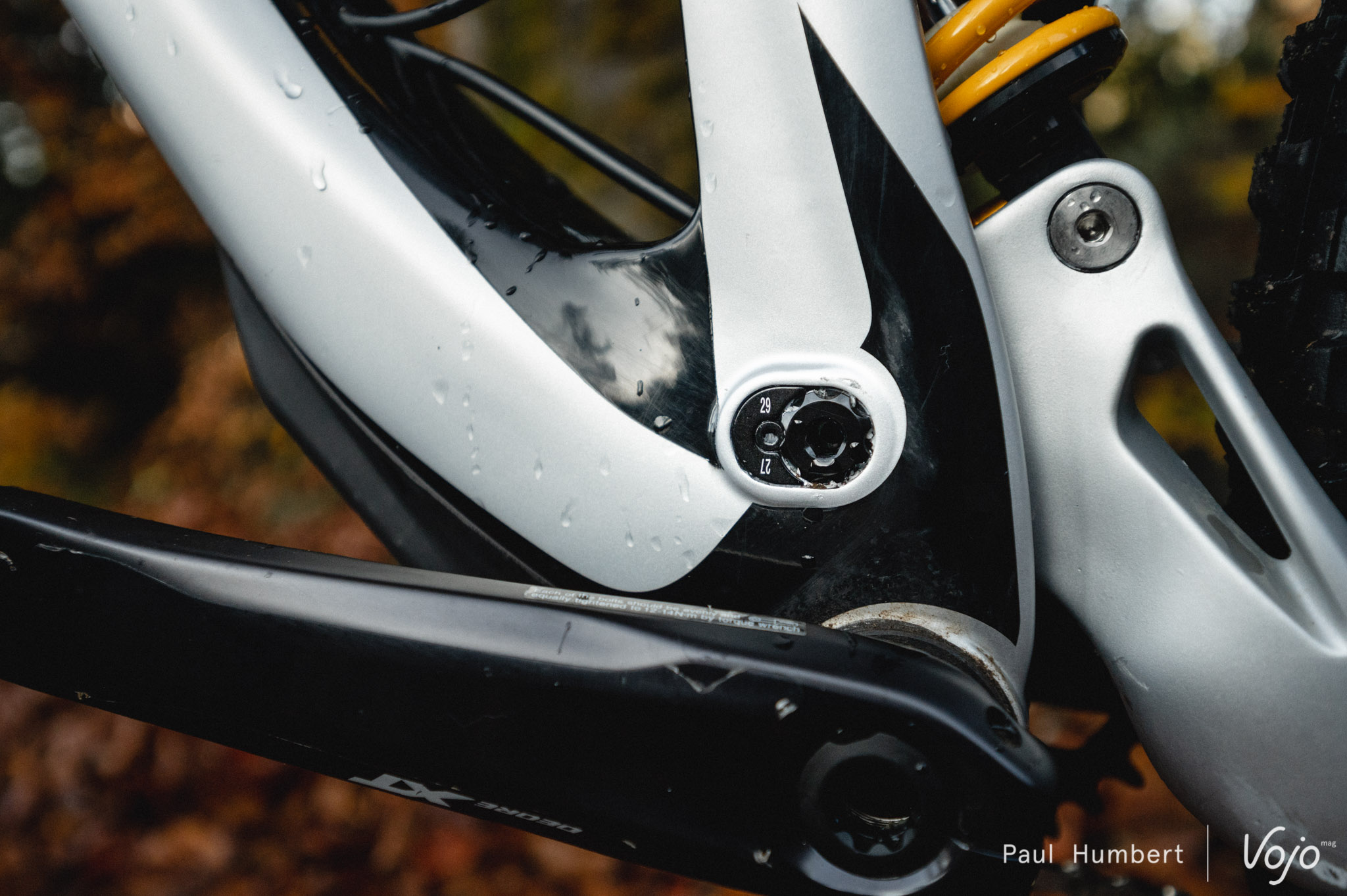Quand on a l’habitude de Fox et RockShox, voire de SR Suntour, la transition vers des suspensions Öhlins demande un peu de temps. En effet, tous les réglages ne sont pas placés aux mêmes endroits et toutes les molettes n’ont pas la même couleur ! Ici, le rebond est jaune et la compression hautes vitesses noire, tandis que le ressort et l’amortissement sont inversés sur la fourche : ressort à droite et hydraulique à gauche, depuis le point de vue du pilote. On signalera au passage qu’en France, c’est X1 Racing qui s’occupe de l’entretien des produits Ohlins pour le VTT.