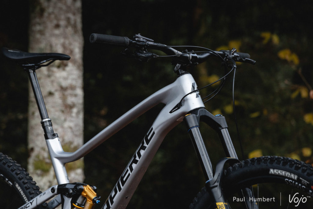 Pour les périphériques, on est sur du simple mais le fonctionnement est irréprochable, à l’image de la tige de selle TranZX RAD (actionnée par le très agréable levier Shimano) à course ajustable. Le poste de pilotage comme la selle sont signés Lapierre et s’ils ne sont pas très flatteurs visuellement, ils se sont montrés très confortables sur le terrain.
