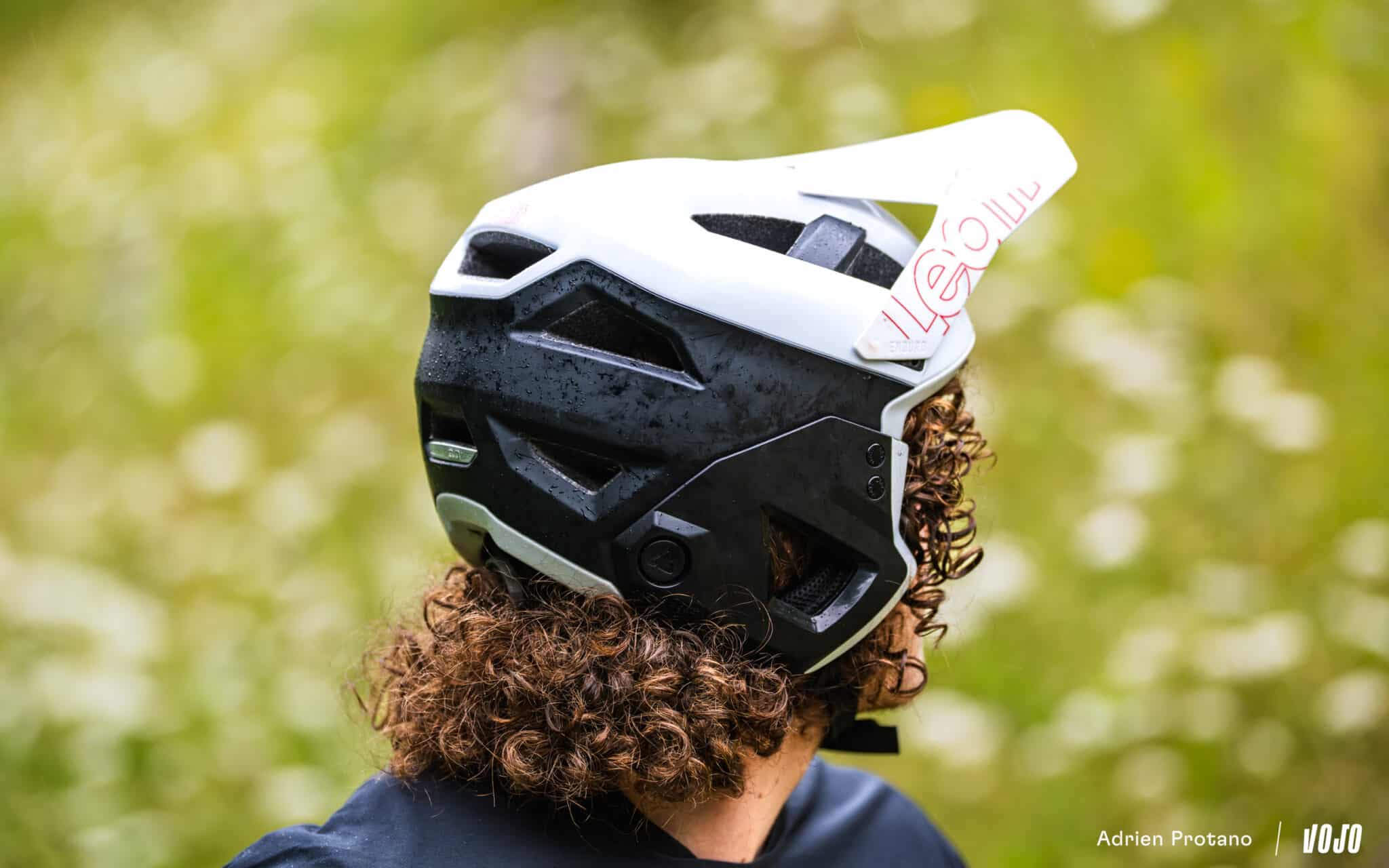 À vouloir être bon partout, le risque est de n’être excellent nulle part… Est-ce un véritable défaut ? Non, cela démontre plutôt le choix de la versatilité et de la polyvalence effectué par Leatt avec ce MTB Enduro 3.0. Avec son système modulable de protège-oreilles/mentonnière amovible, le casque Leatt est en mesure d’accompagner le pilote sur une large gamme de sorties, du trail jusqu’au bikepark. De quoi en faire un casque de choix lorsqu’on ne veut pas investir dans un casque précis pour un usage peu fréquent (ex : un intégral pour un week-end par an en bikepark), ou que l’on ne sait pas vraiment ce qui nous attend comme sentiers et/ou que l’on voyage beaucoup ! Avec un gros point positif pour son confort, le Leatt MTB Enduro offre aussi une ventilation convaincante et un poids contenu. Le passage entre les différentes configurations s’effectue en un clin d’oeil, de telle sorte qu’il est possible d’osciller en cours de sortie entre casque ouvert, 3/4 et intégral. Pas d’inquiétude pour cette mentonnière amovible, celle-ci répond à la norme ASTM F1952–10, à savoir la norme propre aux casques destinés à la pratique de la DH, de quoi vous protéger même lors de vos sorties les plus engagées !