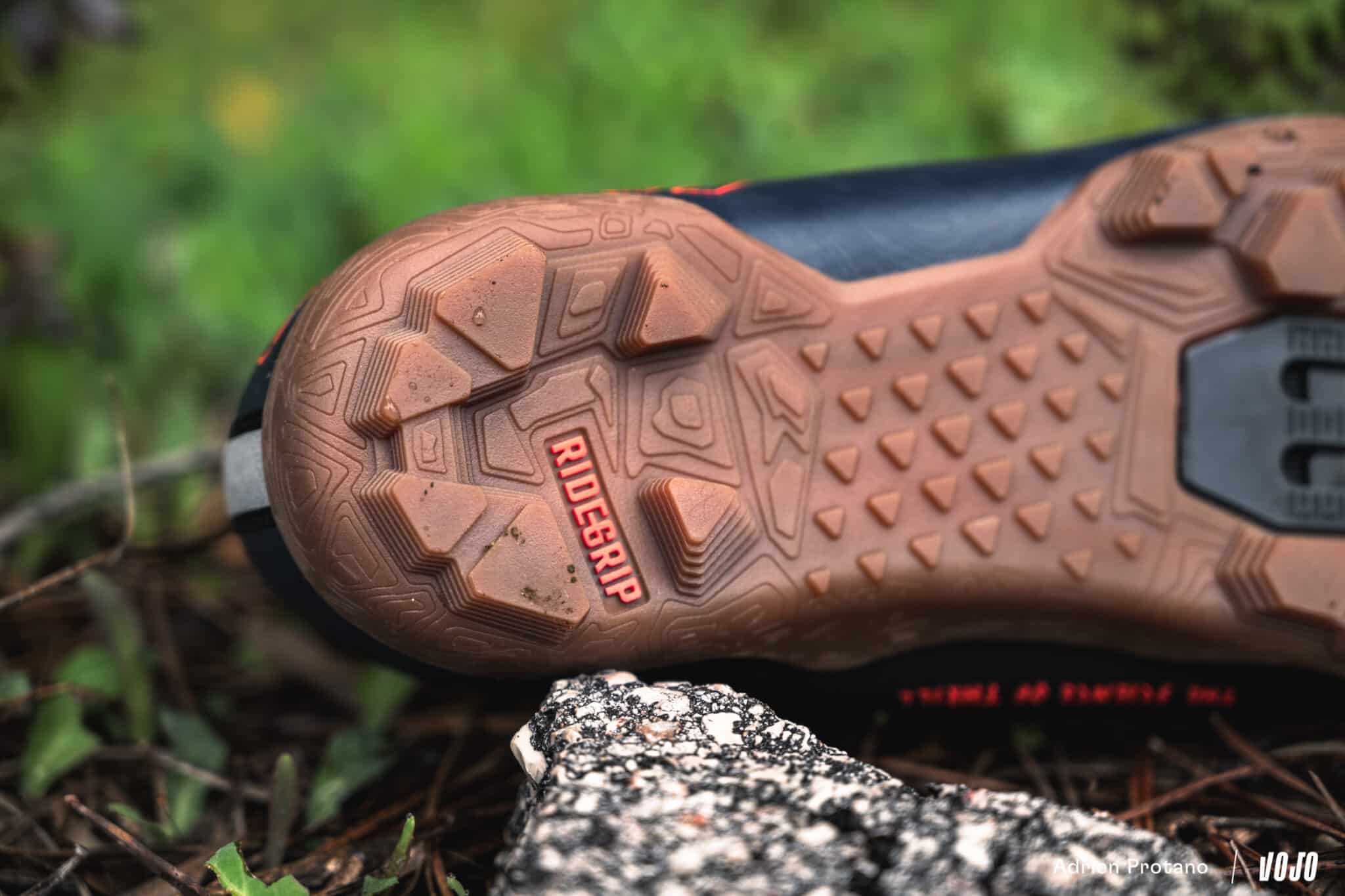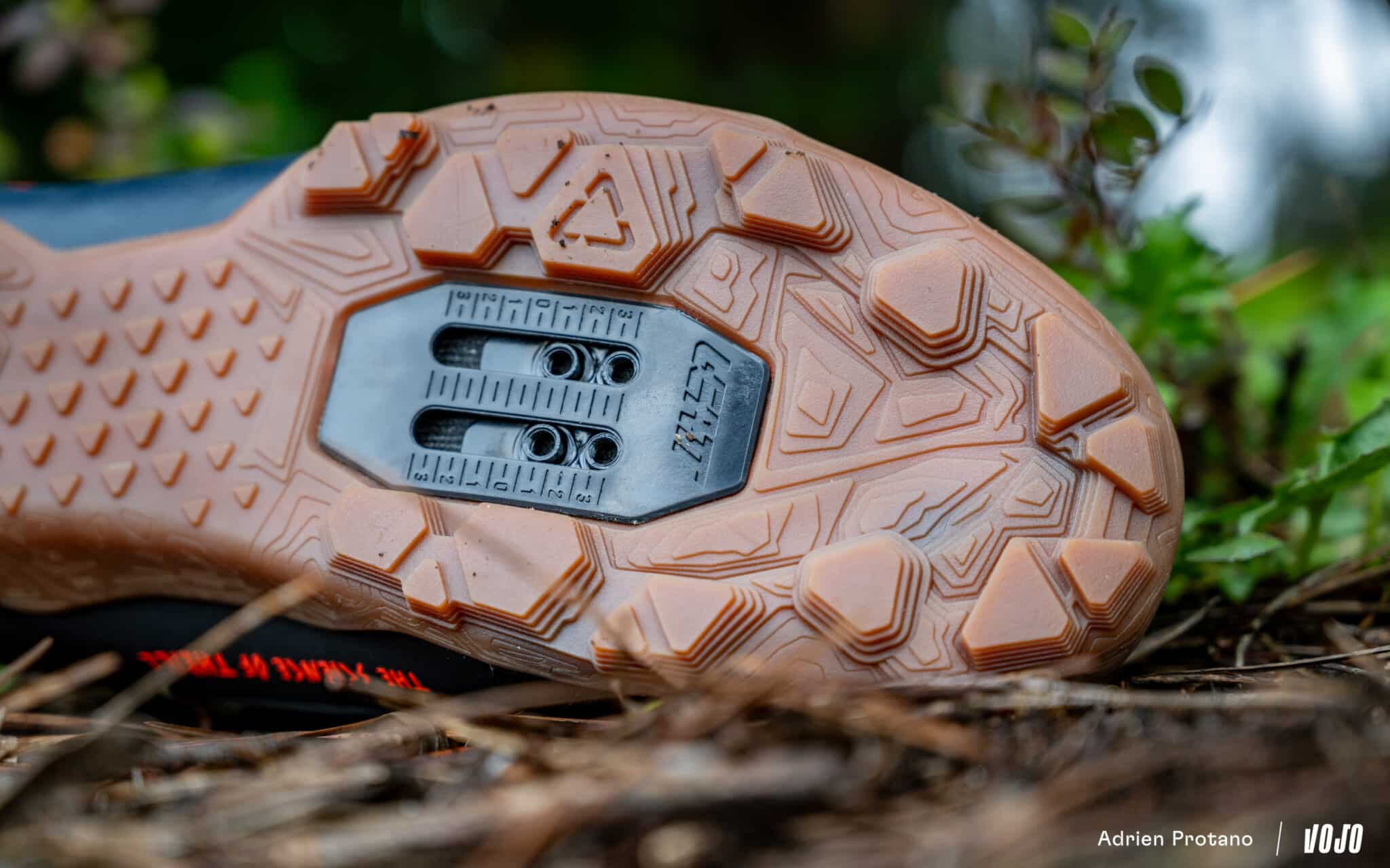 Leatt insiste sur le travail effectué autour de la semelle : composée à 20 % de carbone et 80 % de nylon, elle offre « une rigidité idéale pour le transfert de puissance, tout en conservant une certaine souplesse pour le confort sur les longues distances », selon la marque. Cette semelle bénéficie également d’un profil spécifique en caoutchouc, pour assurer une excellente adhérence lors des passages à pied ou des portages. Les espaces pour cales sont allongés, offrant une large plage d’ajustement pour trouver la position idéale.