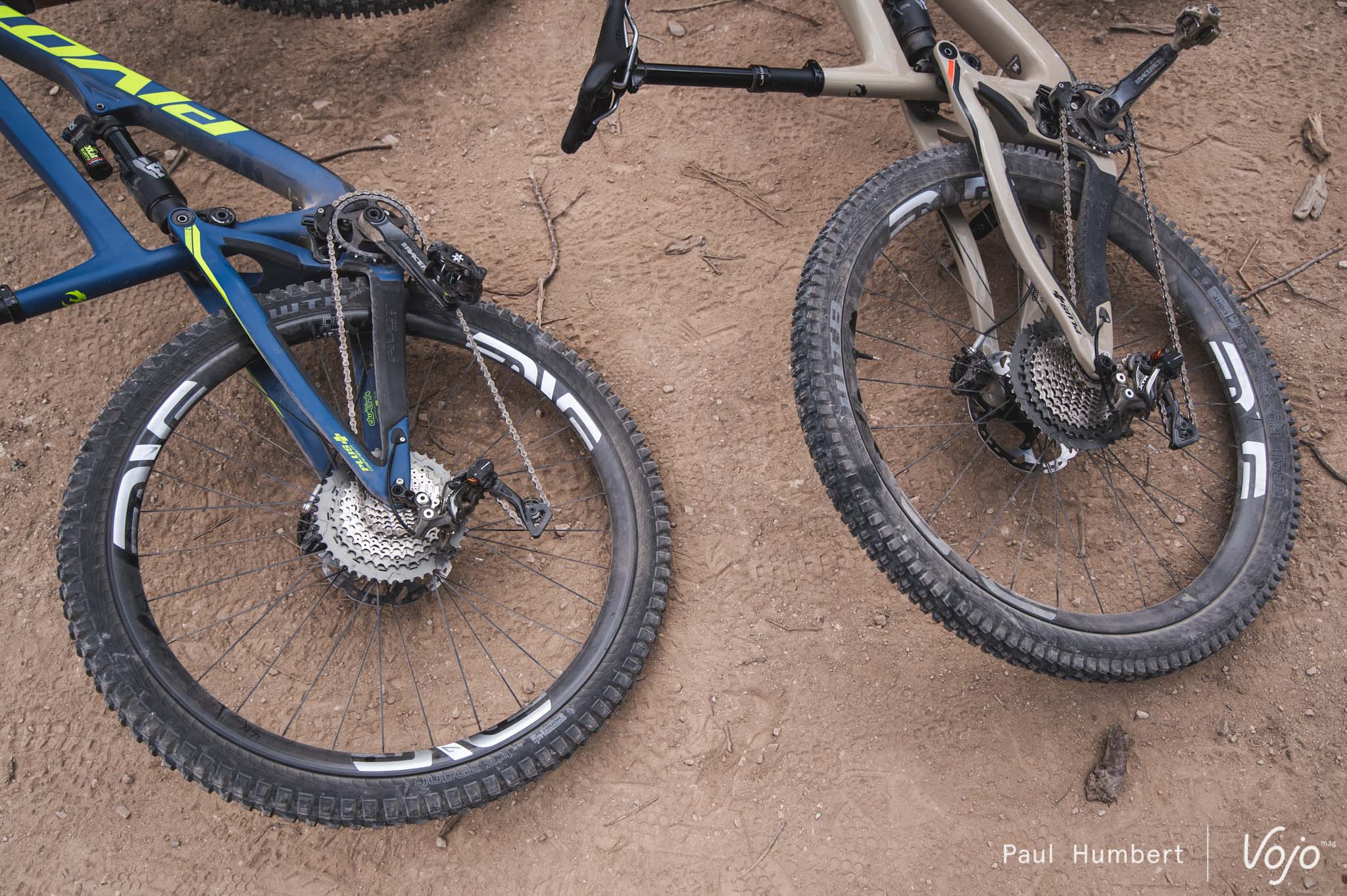 Place ensuite aux premières notations, et l’exercice n’est pas facile. Un protocole fiable implique de connaître parfaitement son vélo, le terrain et son propre niveau par coeur. Ici, nos testeurs ont leurs marques, mais il est parfois difficile de distinguer les sensations renvoyées par le vélo, les roues, pneus ou simplement le poste de pilotage. Petit à petit, Aymeric et Léo trouvent leur rythme.