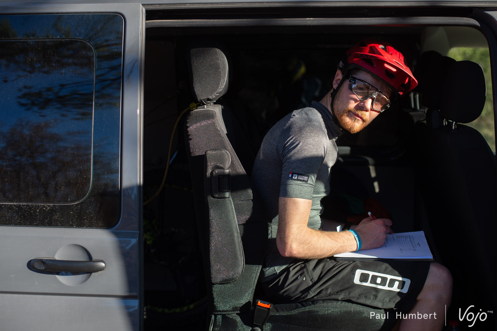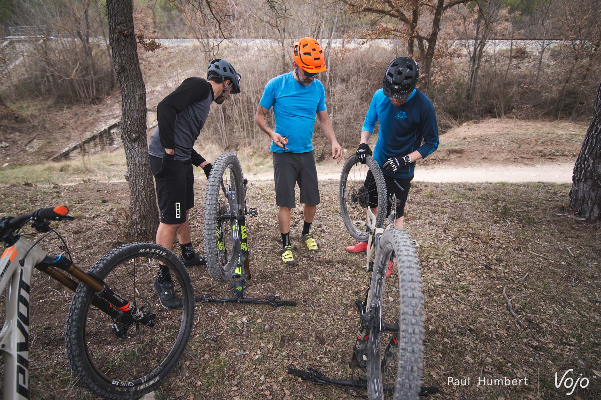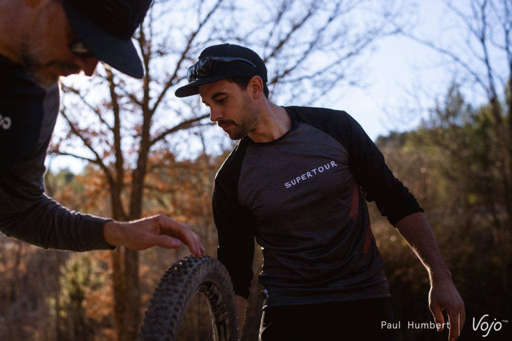 Place ensuite aux premières notations, et l’exercice n’est pas facile. Un protocole fiable implique de connaître parfaitement son vélo, le terrain et son propre niveau par coeur. Ici, nos testeurs ont leurs marques, mais il est parfois difficile de distinguer les sensations renvoyées par le vélo, les roues, pneus ou simplement le poste de pilotage. Petit à petit, Aymeric et Léo trouvent leur rythme.