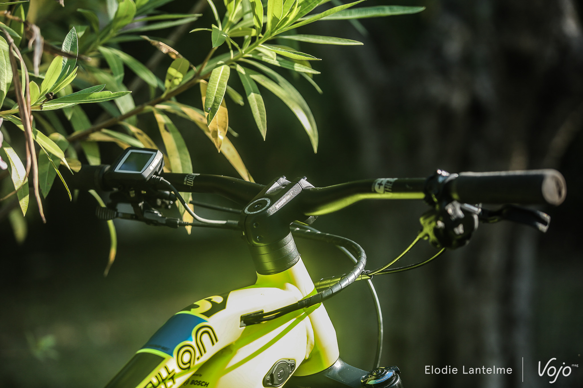 Nathalie : Le mode marche, qui n’est pas ergonomique : tu dois maintenir la commande appuyée avec le pouce tout en poussant le vélo, et le fait qu’il faille être sur les plus petits pignons pour qu’il se déclenche n’est pas logique, puisque, par essence, quand on active ce mode, c’est en général après avoir tout tenté en montée, donc avoir placé les vitesses tout à gauche. D’ailleurs, le démarrage du moteur peut se révéler très vif en turbo quand tu es « tout à gauche », justement. Je finirai en disant que le cintre, commun à toutes les tailles, est à couper pour une taille S.