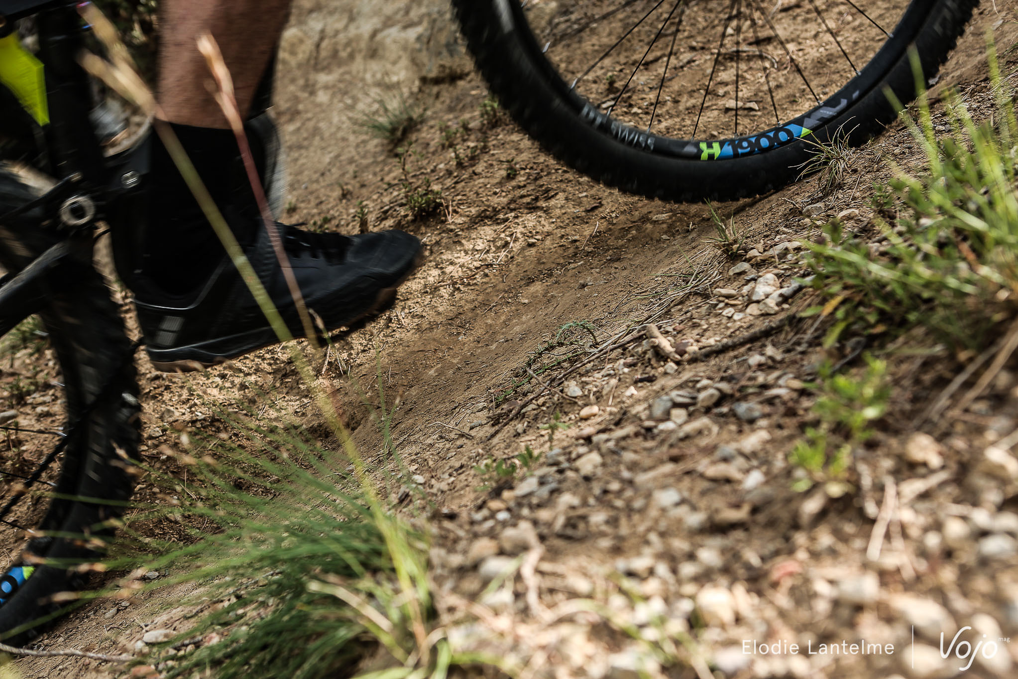 Clément : Le train de pneus, parfait pour le programme du vélo, mais limité en usage enduro engagé (j’ai eu besoin de gonfler beaucoup pour épargner les flancs et la tenue sur l’angle m’a valu deux-trois frayeurs). Malgré un bon équilibre, le vélo était parfois dur à balancer dans les virages serrés, alors j’ajouterais le manque de précision parfois sur les enchaînements rapides.
