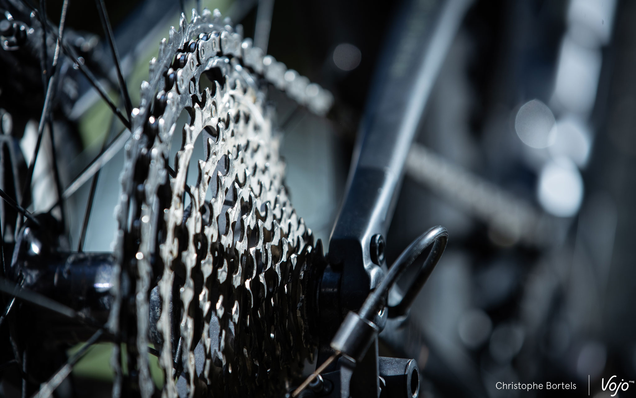 Tiens, au fait, vous vous souvenez de cette petite rondelle placée derrière la cassette XTR, donc l’absence pouvait générer des craquements ? Eh bien pour la XT, elle est toujours là, mais cette fois elle est collée directement à la cassette. On ne sait toujours pas exactement à quoi elle sert, mais elle est bien là… Attention, elle se décolle au fil du temps, ne la perdez pas ou ne l’oubliez pas sur le corps de roue libre en cas d’entretien ou de changement !