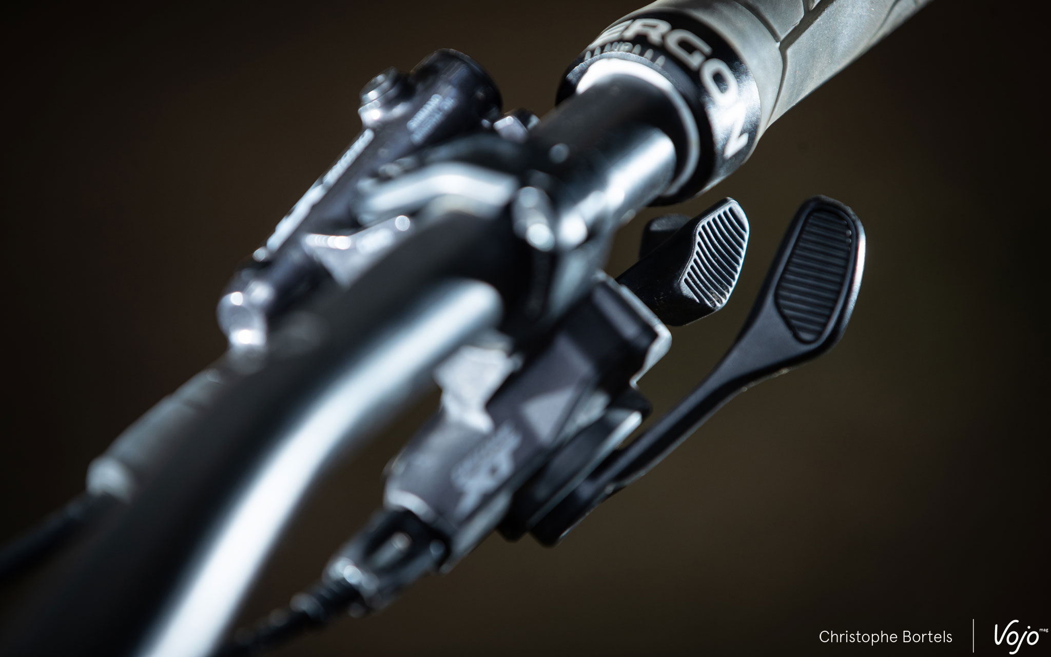 Toujours au niveau de ce petit levier, le XT fait l’impasse sur un petit raffinement présent sur le XTR, à savoir un insert en caoutchouc côté pouce, qui laisse ici la place à des stries faites directement dans la matière. Celui qui roule sans gants sentira peut-être la différence, mais avec des gants la nuance est en tout cas imperceptible, tant au niveau du feeling que de l’accroche. Comme sur le XTR, un insert en caoutchouc est par contre bien présent sur le gros levier du XT.