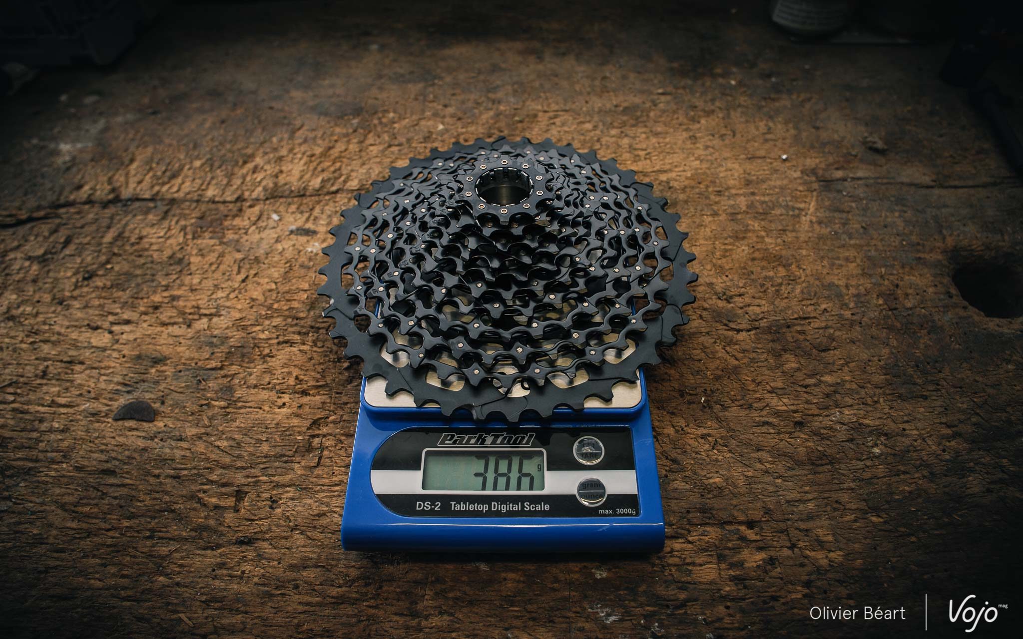 A l’oeil nu, c’est dur de différencier la cassette Sram GX, PG-1150 de son nom de code, de la X1/PG-1180. Toutes deux reposent sur une construction rivetée pour les 10 premiers pignons, mais la X1 a droit à un 42 dents en aluminium, alors que la GX se contente d’une grande couronne en acier.