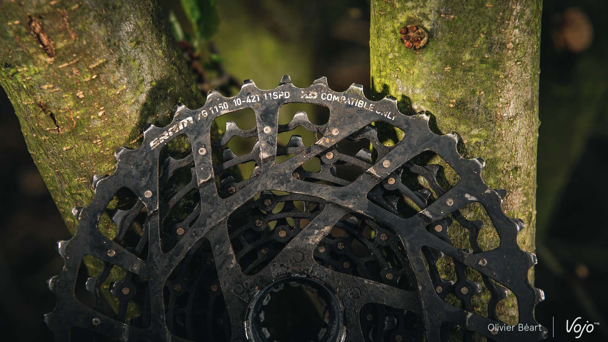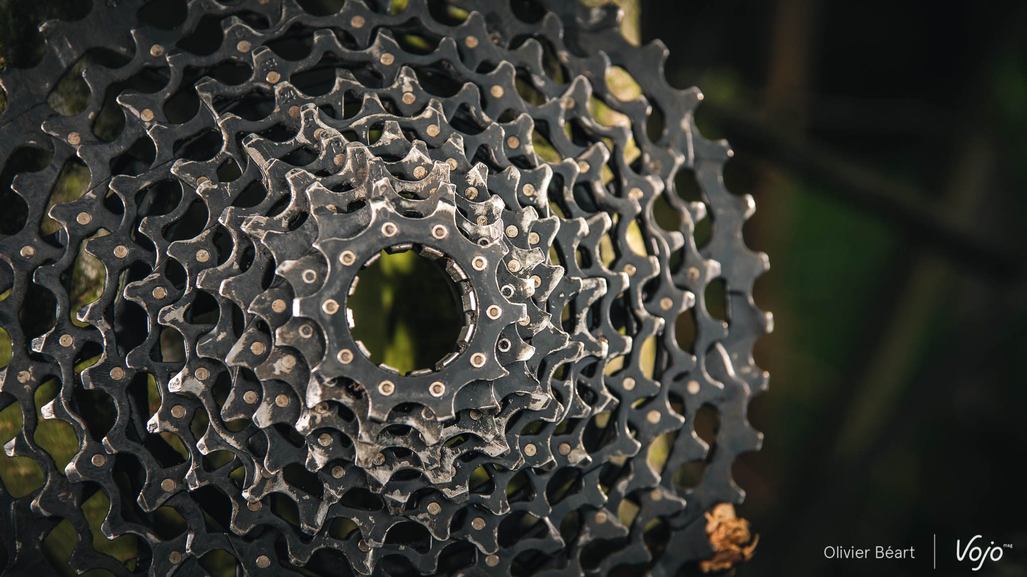 Côté durabilité, la X1 nous avait déjà bluffés (comme toutes les cassettes Sram 11 vitesses en général) et la GX ne déçoit pas ! Bien sûr, le traitement de surface noir disparaît après un peu moins de 1000km et cela a un impact visuel bien réel mais moins important que ce que nos images peuvent laisser penser. Le plus important, c’est que l’acier des pignons garde encore toute ses performances même s’il change de couleur.