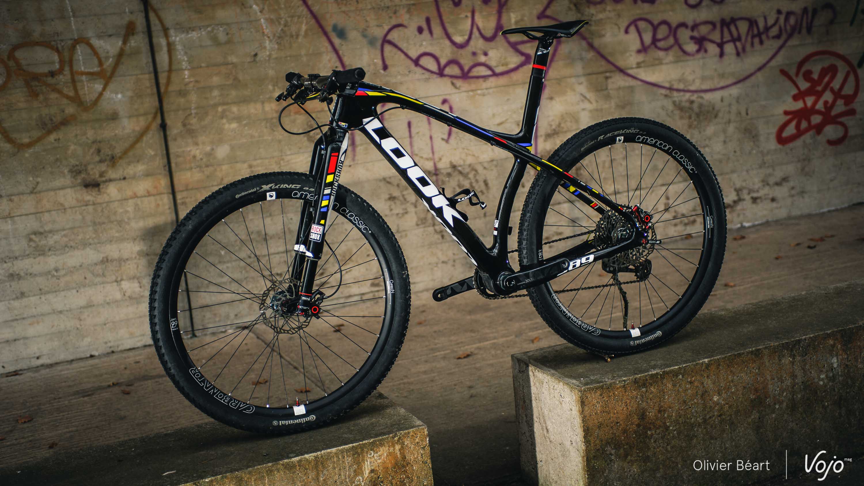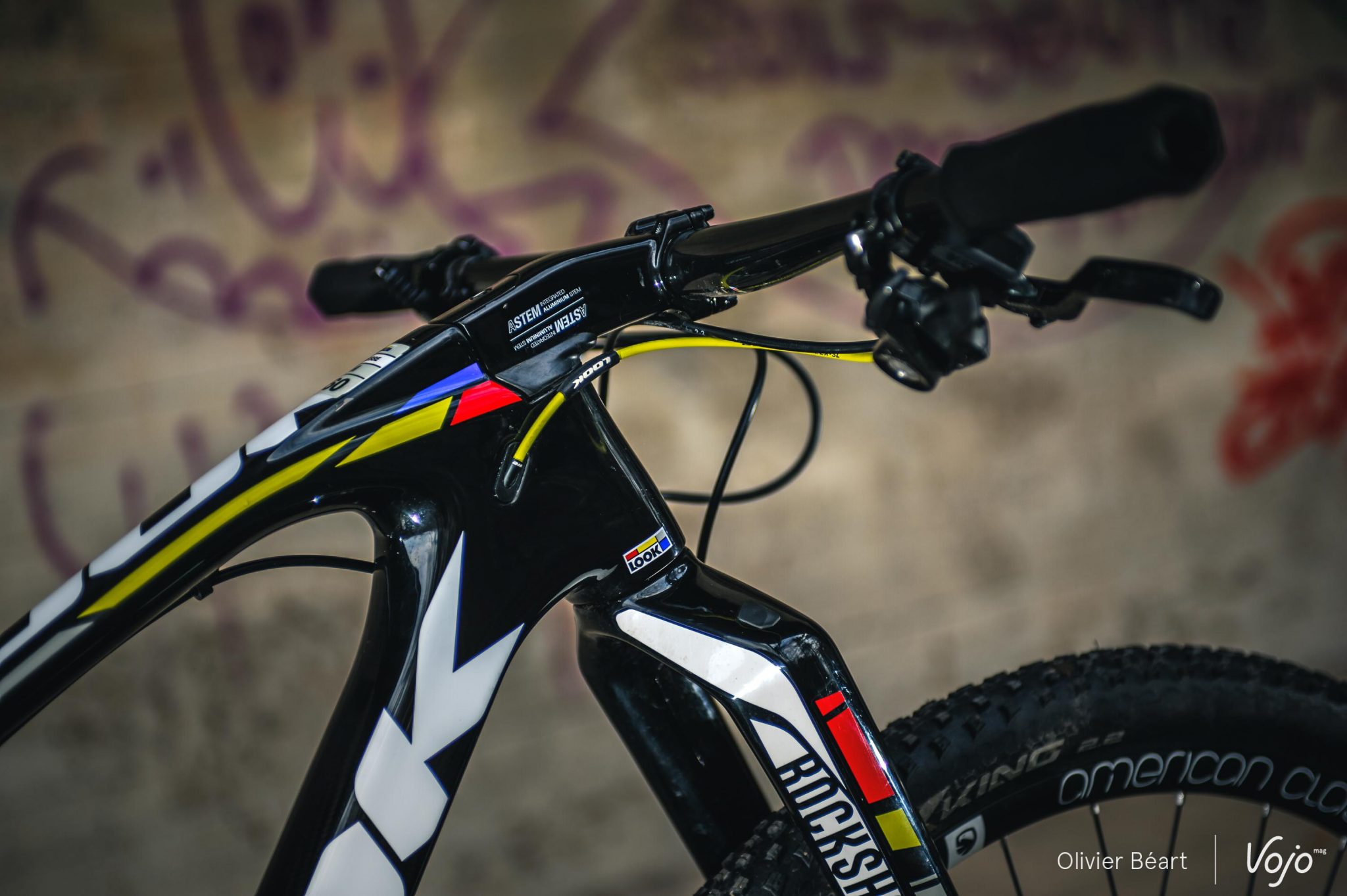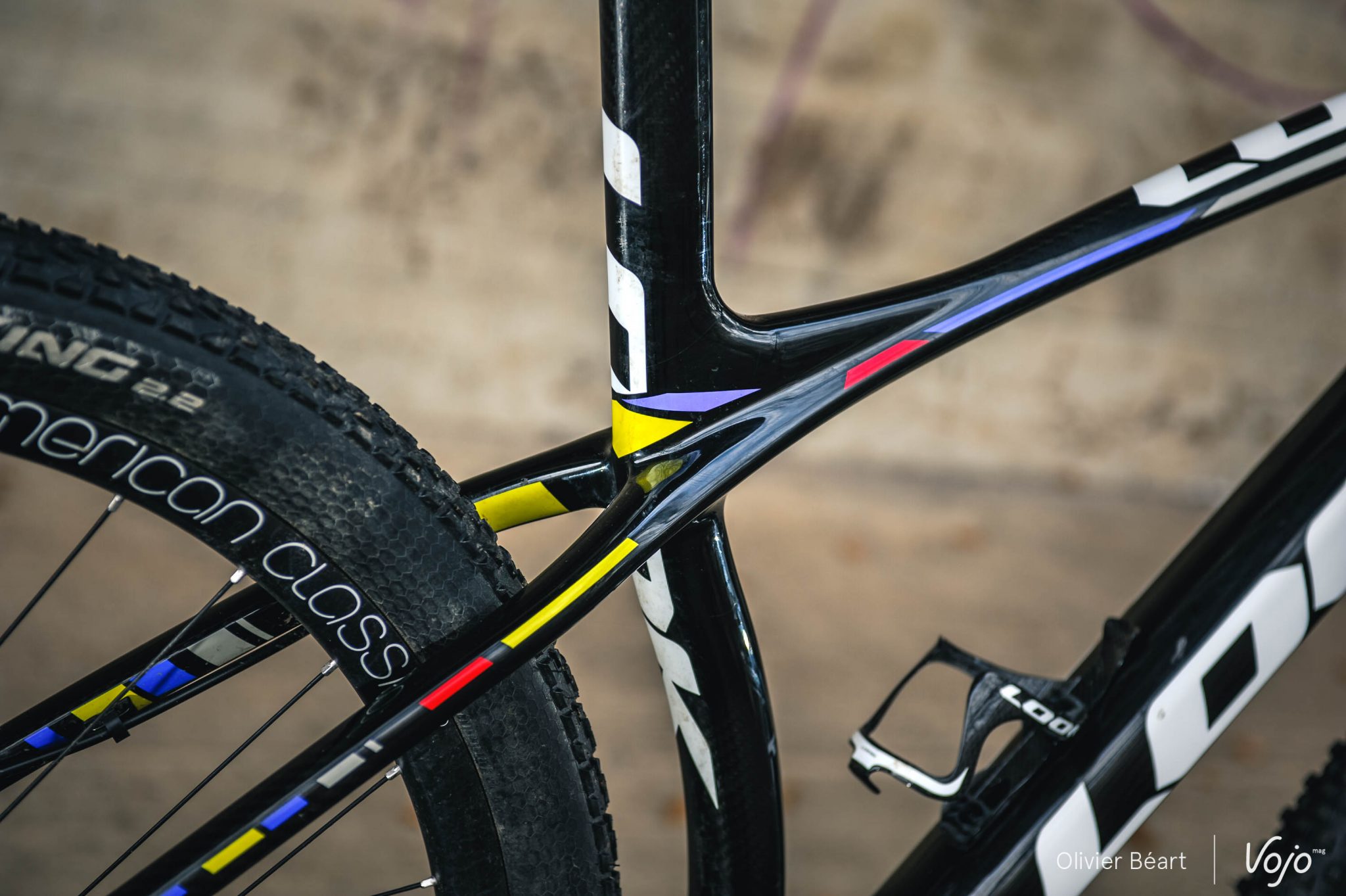 Pour poursuivre sur le chapitre esthétique, qu’on aime ou pas, la déco « Mondrian » ne peut pas non plus laisser indifférent. Faisant référence aux racines de la marque et au célèbre peintre, elle magnifie les lignes du Look 989. Ajoutez une finition superbe et une peinture profonde ainsi qu’une déco personnalisée sur la fourche RockShox RS-1 et vous obtenez, selon nous, une réussite totale.