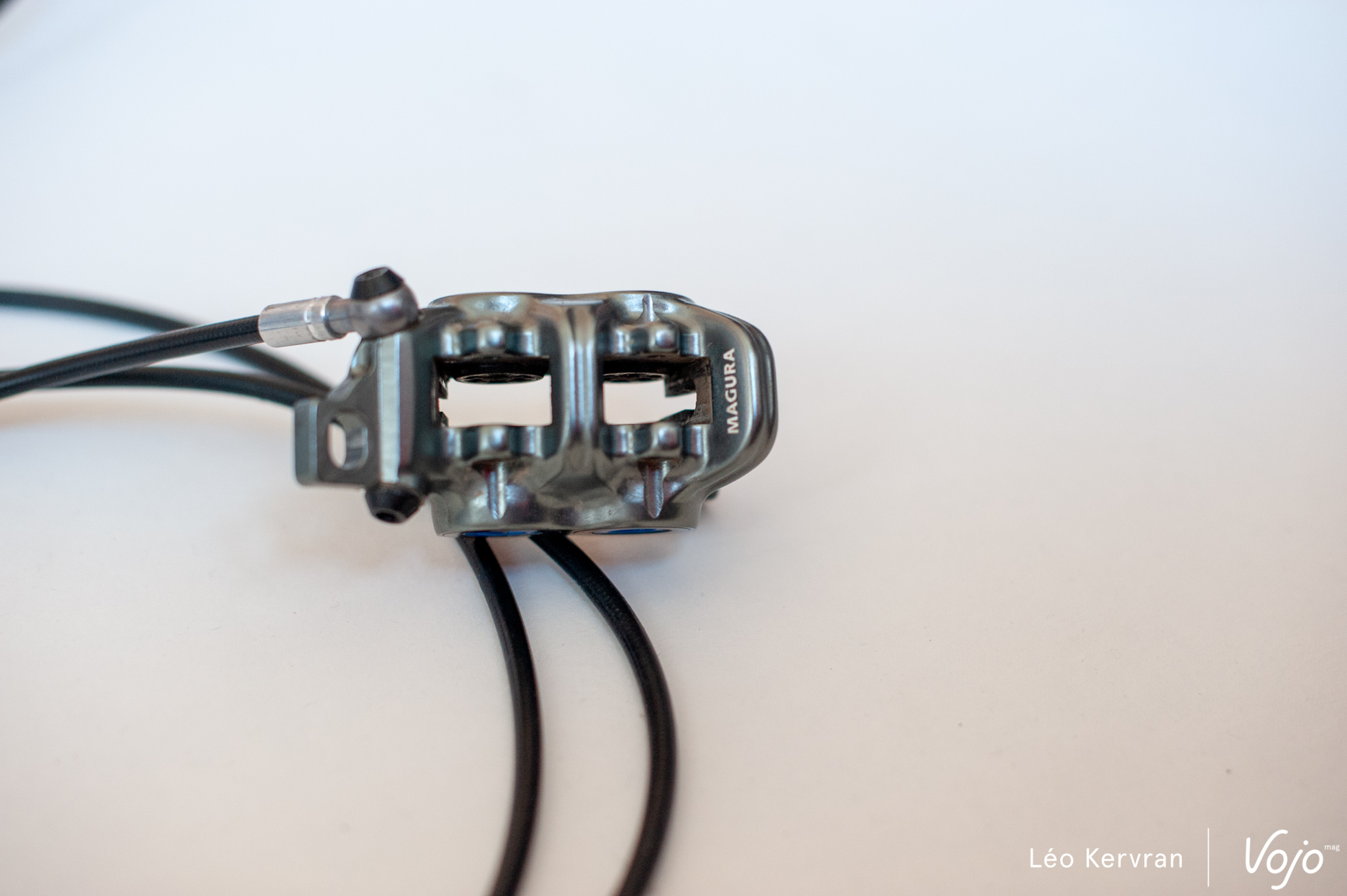 En plus de cette avantage pratique, Magura nous a expliqué que les plaquettes individuelles (donc les 8.X) se comportent mieux face à la chaleur et aux vibrations que les plaquettes « doubles » 9.X sur leurs tests internes. La garniture est la même sur une 8.P et une 9.P mais du fait de ces petites différences, on devrait donc avoir un freinage de meilleure qualité avec les 8.P.