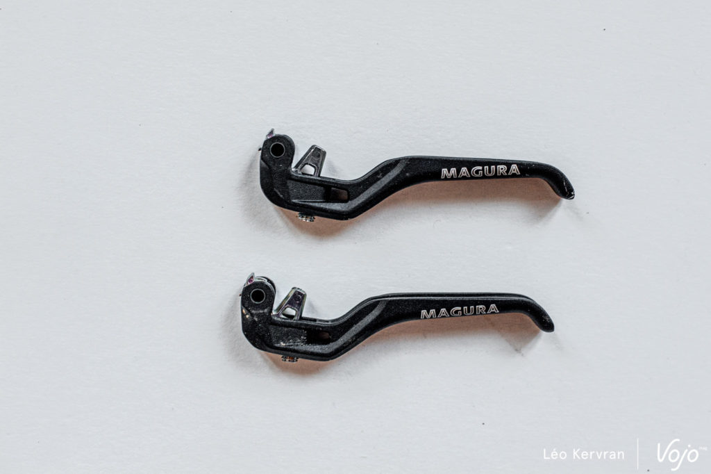 C’est la proposition la plus marquante de Magura : sur tous les freins de la marque, des très accessibles MT Sport jusqu’aux très exclusifs MT8 SL, il est possible de changer les leviers de freins. Attention toutefois, tous les leviers ne sont pas compatibles avec tous les modèles de freins et surtout, il existe deux versions de chaque levier car les maîtres-cylindres en Carbotecture (MT Sport, MT4, MT Trail Sport, MT5) et ceux en Carbotecture SL (MT Trail SL, MT7, MT8) ne fonctionnent pas avec le même système de ressort.