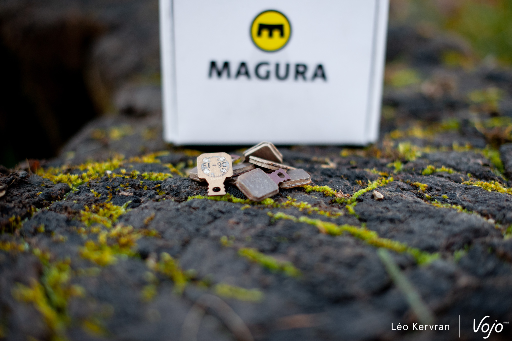 Les plaquettes sont l’élément le plus simple et le plus accessible sur lequel jouer pour modifier le comportement d’un frein. En général, chaque marque dispose de plusieurs références, avec des garnitures et/ou des supports différents. Chez Magura, il y a au total 5 types de plaquettes compatibles avec les freins 4 pistons. Petite particularité de la marque allemande, elles sont toutes aimantées aux pistons ce qui permet de se passer de ressort de rappel.