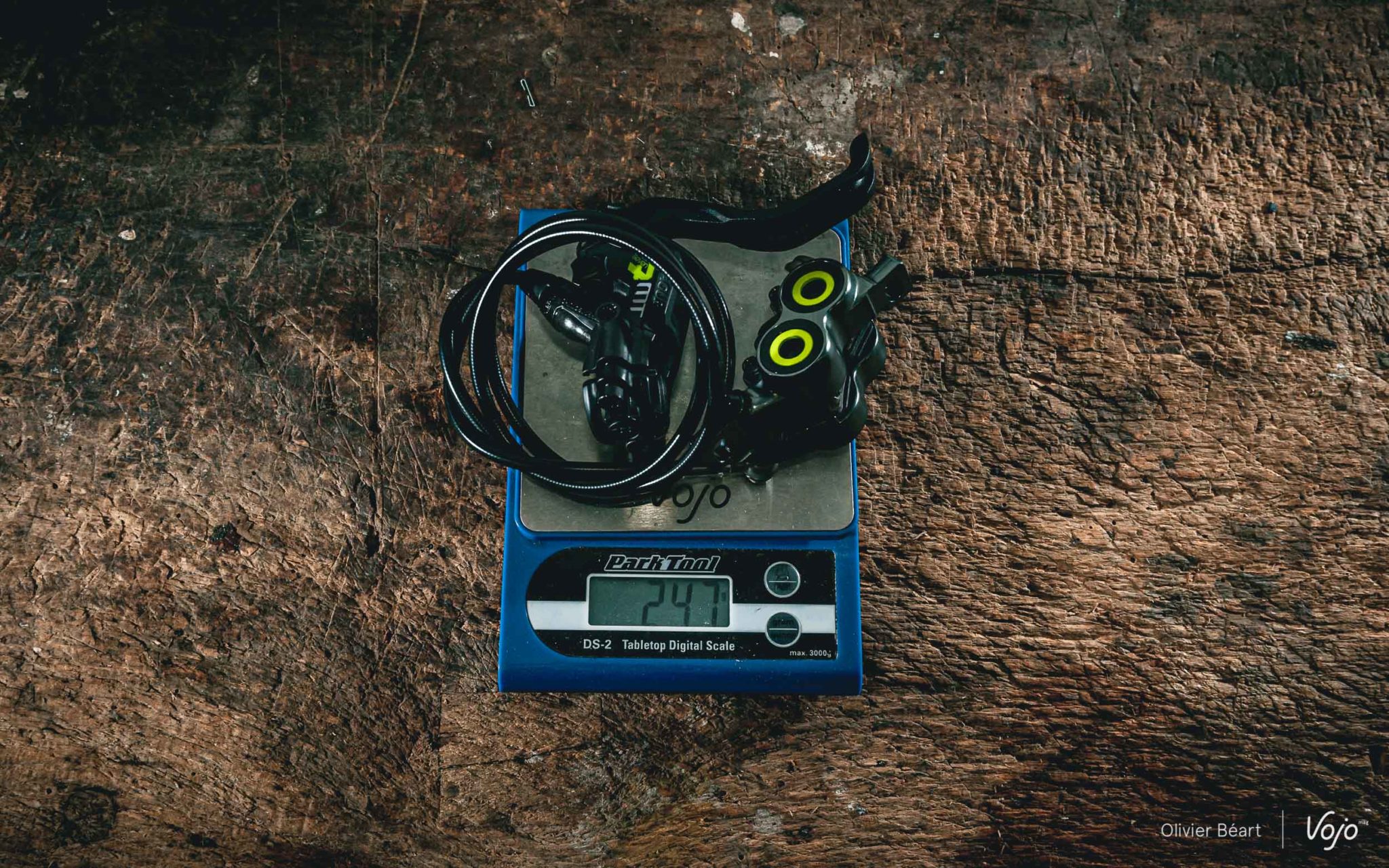 Le frein était neuf, complet et monté en usine (pas de Durit à raccorder) et nous ne l’avons pas purgé avant le montage, il ne s’agit donc vraisemblablement pas d’une mauvaise manipulation de notre part. Le réglage de la course du levier était placé en position médiane, comme pour les autres freins. Il ne s’agit vraisemblablement pas non plus d’un souci de garde mal réglée. Les plaquettes et les pistons n’étaient pas plus marqués que ceux des autres marques après le test, donc nous supposons qu’ils ne sont pas en faute non plus. Notre hypothèse est qu’il y avait déjà un peu d’air dans le circuit d’huile. La quantité devait être suffisamment faible pour que ce soit insensible lors du montage à froid mais avec la chaleur, l’air s’est dilaté ce qui a entraîné le problème décrit au-dessus.